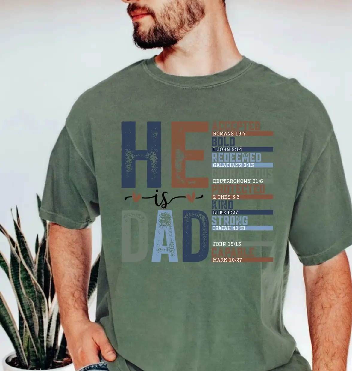 Christian Dad Shirt He Is Dad Bible Verse Shirt Faith Father Gift Religious Dad Tee Scripture Shirt Gift for Dad Christian