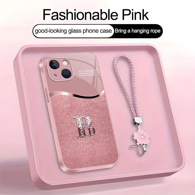 Luxury Pink Phone Case with Lanyard Initial Letter A-Z Cover for iPhone 15 Plus --975