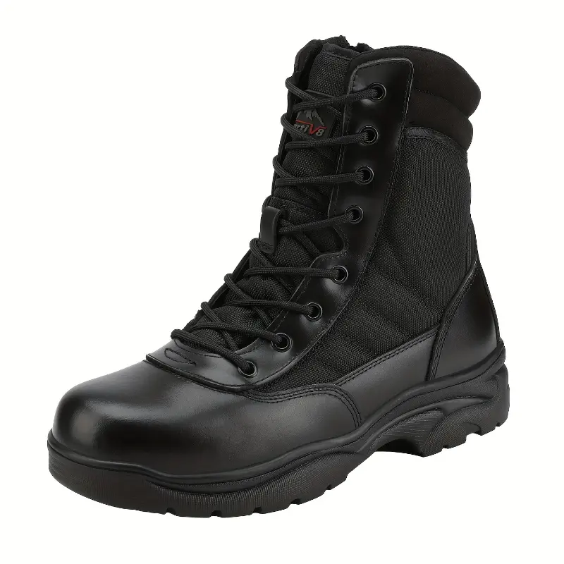 5. Men's Tactical Work Boots Side Zipper Leather Motorcycle Combat Boots Fathersdaygift Army Shoes Closed Boy Footwear Bota Lace Worker Pedal Chef cowboy boots men