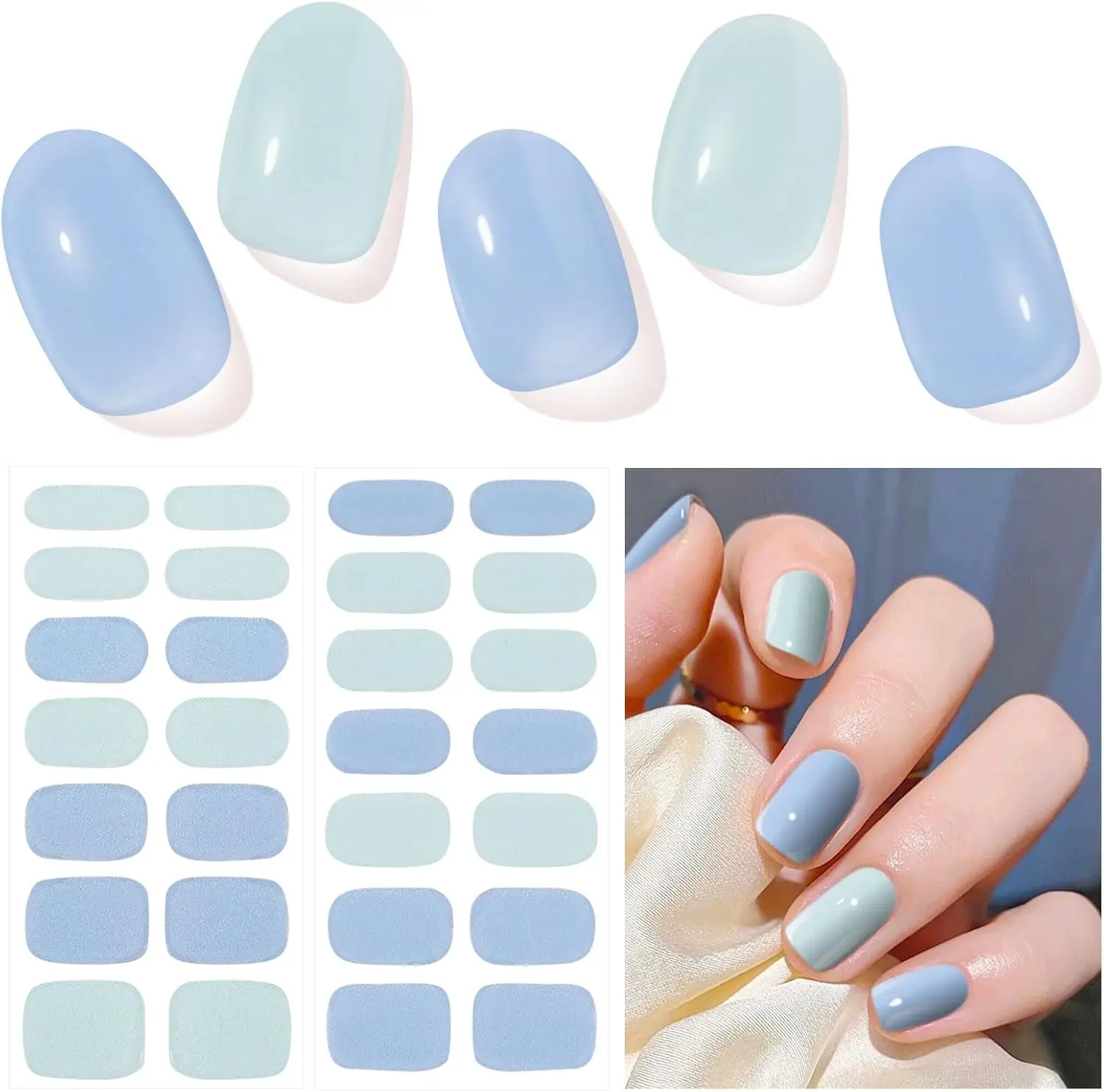 4. Semi Cured Gel Nail Strips, 28 pcs UV Gel Nail Stickers Full Nails Wraps for Women Home DIY Nails Art, UV Light Required(Pale Sky Blue)