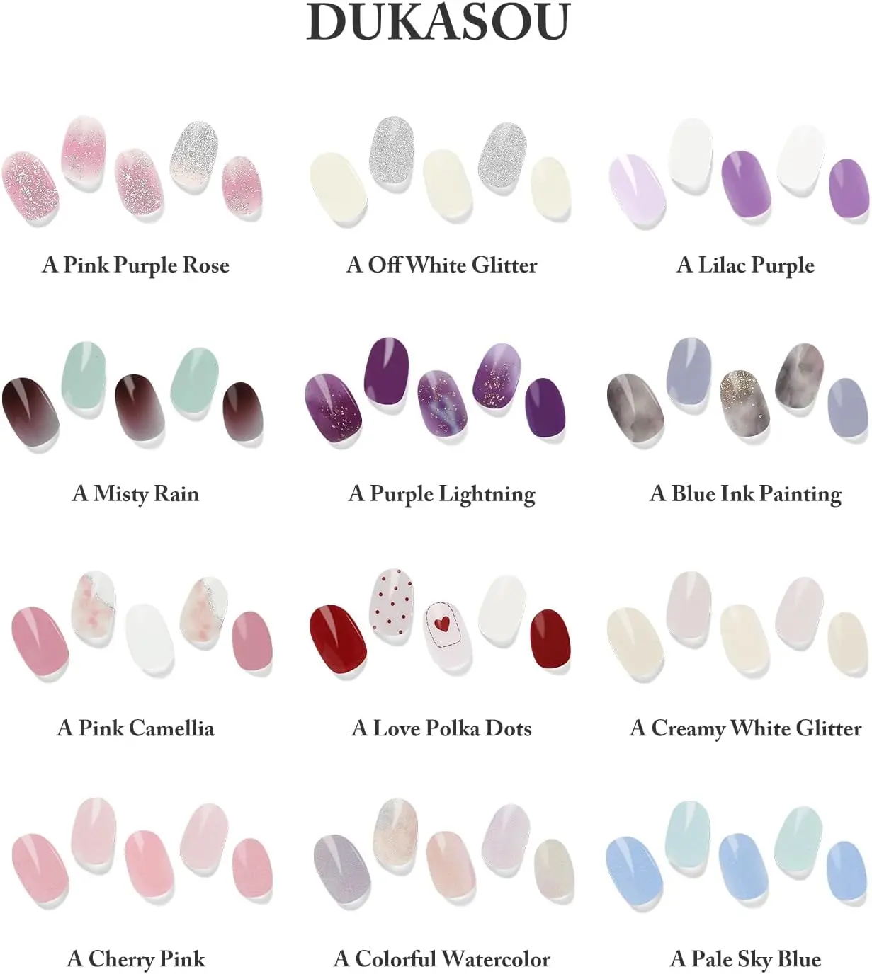 ·Real Gel Nail Polish Strips: Our semi cured gel nails are made of real liquid polymer gel, pre-cured 60% to maintain softness and elasticity. Upgrade the edge of the nail paste with the nail, good adhesion, not easy to fall off