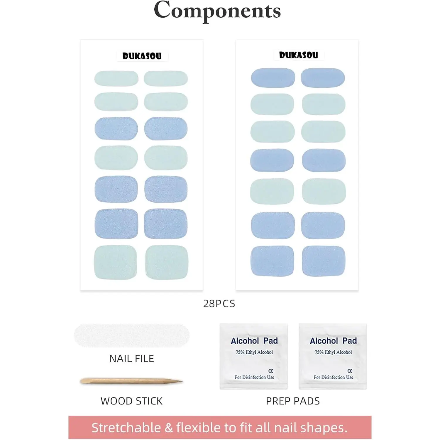·Prefect Gel Nail Strips Set: The semi cured gel nail strips included 28pcs gel nail stickers in 14 different sizes, with 2 prep pads, a nail file and a wood stick. Whether your nails are square, round or pointed, you can use our gel nail strips