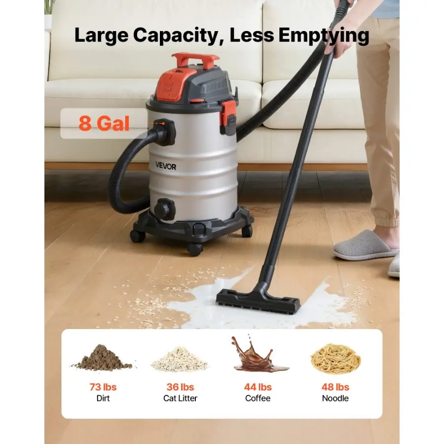 8 Gallons+4.5 Peak HP+Wet/Dry