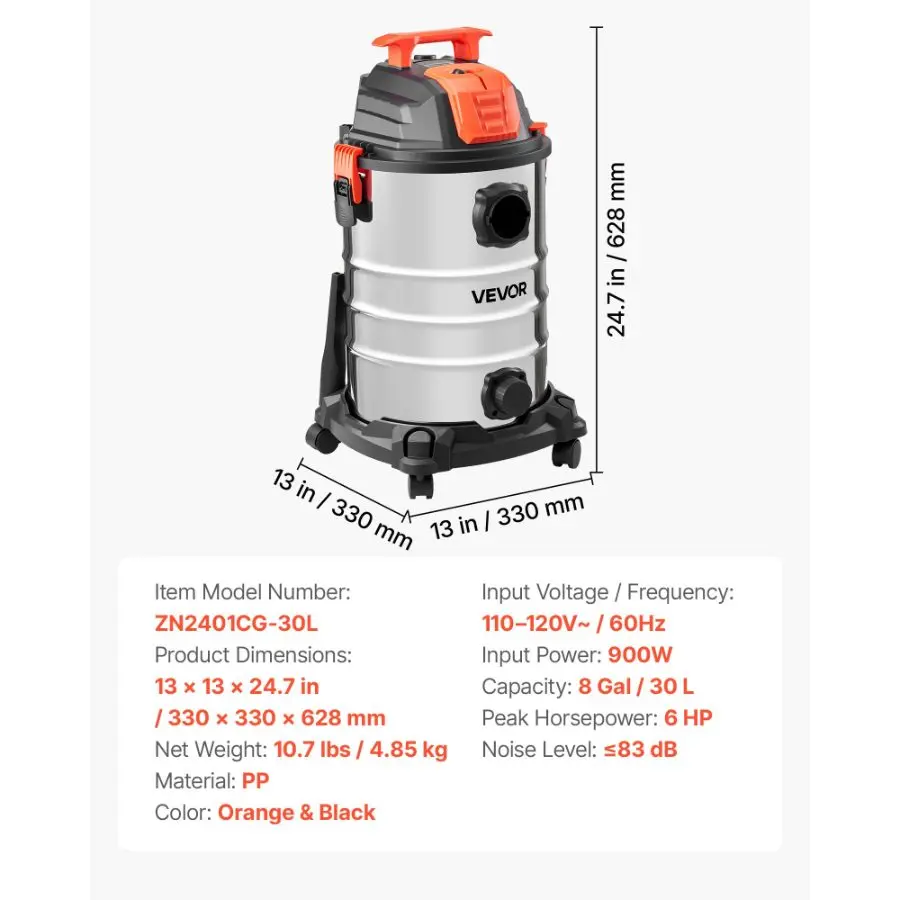 8 Gallons+6 Peak HP+Wet/Dry-New
