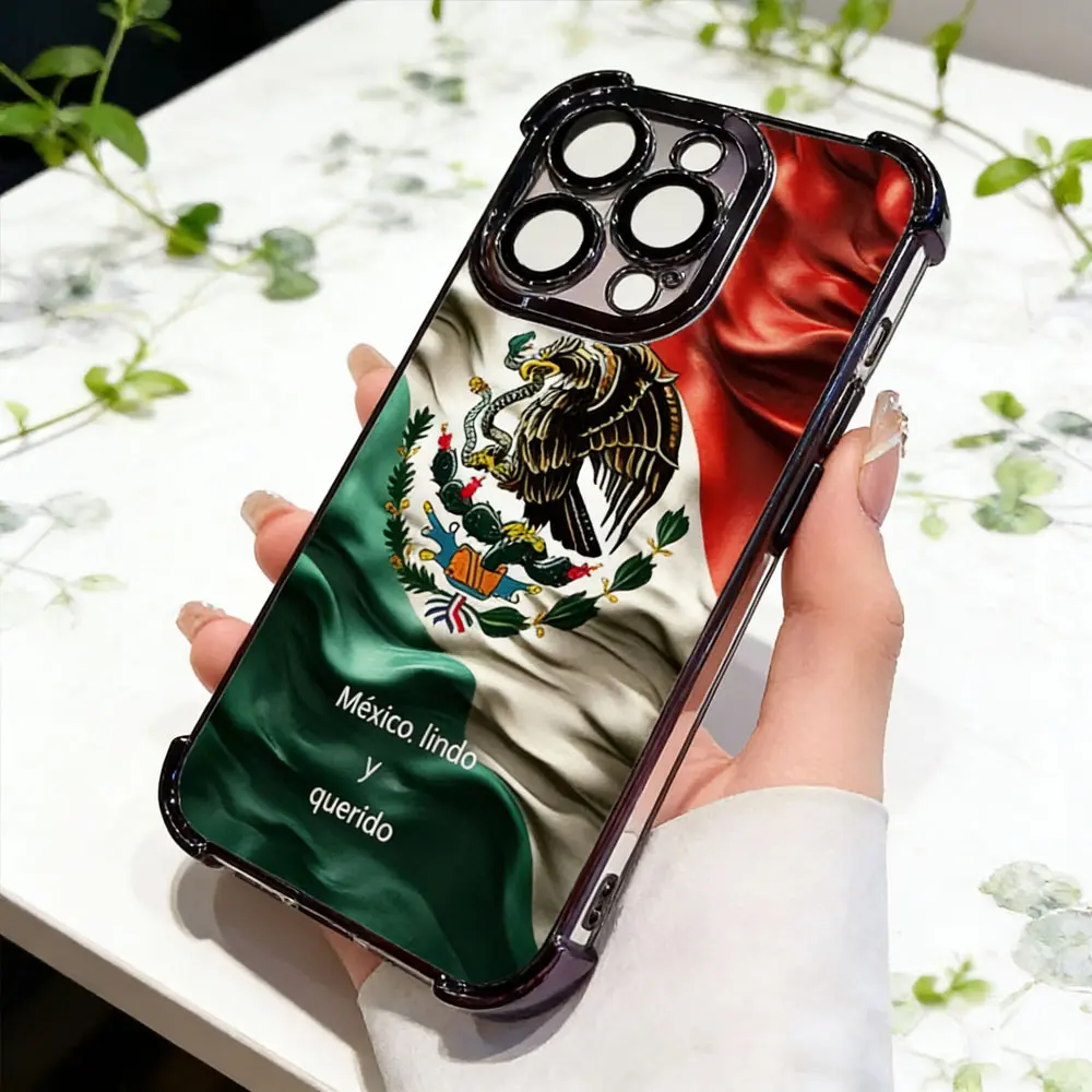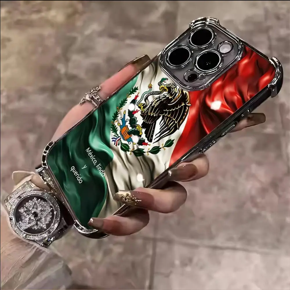 Mexico Heritage Eagle Phone Case for iPhone 17 16 15 14 Plus 13 12 11 Pro Max, Chrome Plated Frame Anti-Drop Shockproof Protective Case
