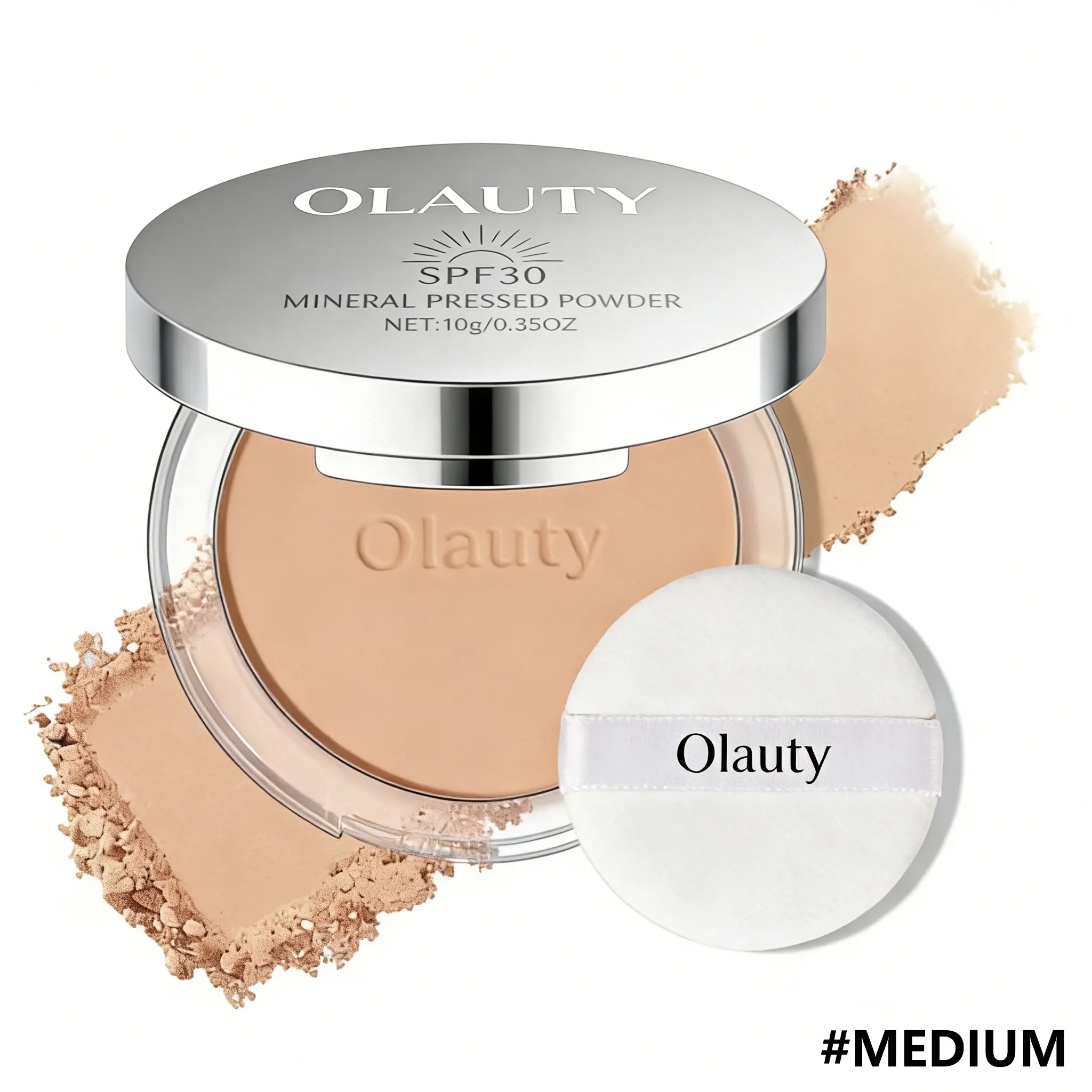 OLAUTY Mineral Powder, SPF 30, 4-in-1 Mineral Pressed Powder Foundation with Concealer and Setting, Matte Weightless Pressed Foundation, Light to Medium Coverage