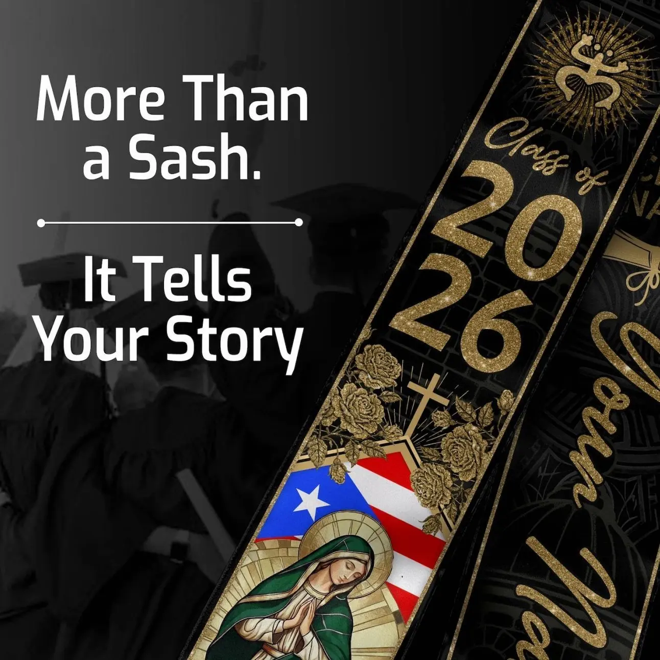 5. Custom Puerto Rico Graduation Sash, Personalized Grad Stole Boricua Pride, Graduation Outfit for Puerto Rican Students, Class of 2026 Gift