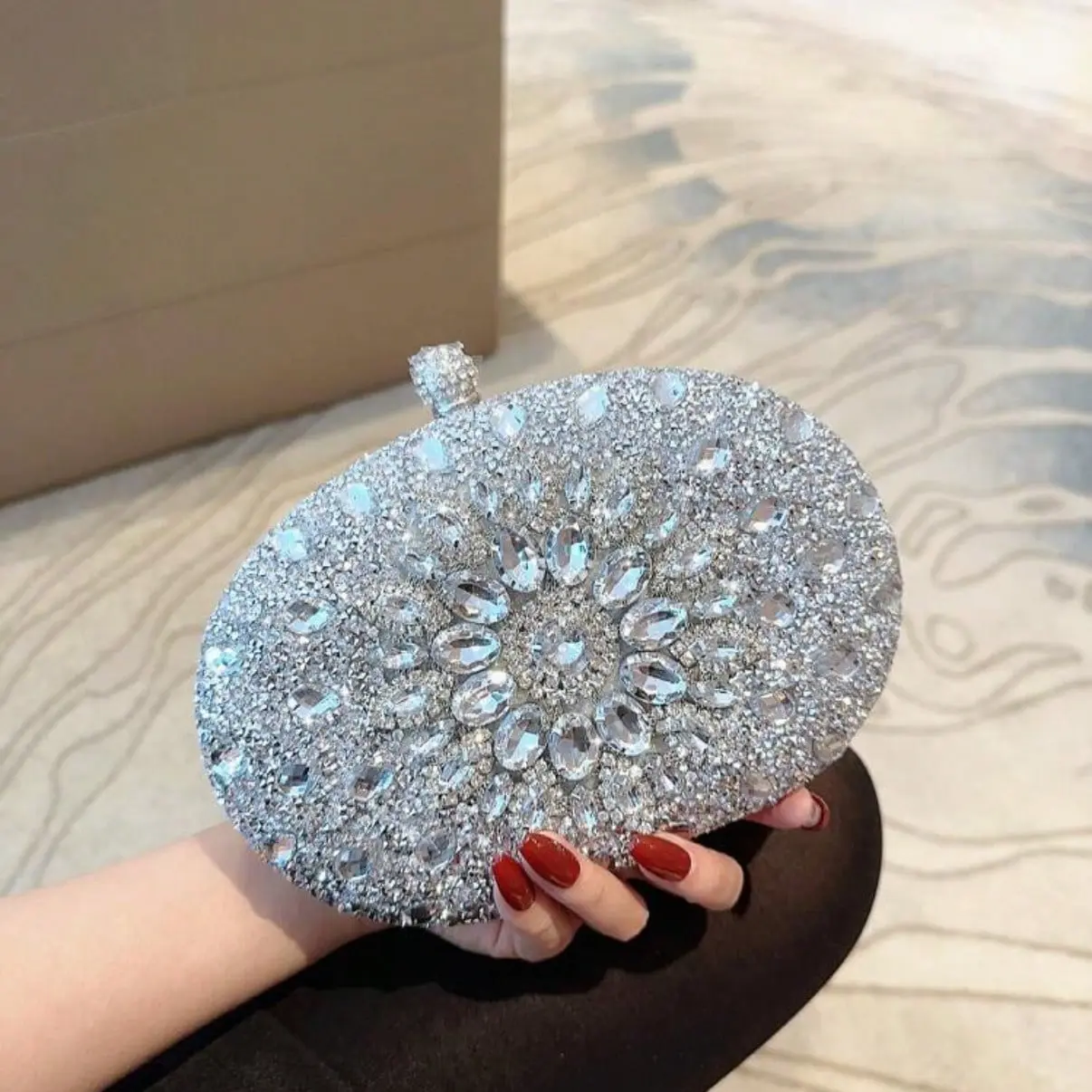 This glamorous clutch handbag is perfect for any special occasion. Inspired by bridal elegance, it features a dazzling rhinestone design that catches the eye. Ideal for parties, dinners, and Christmas, this mini bag adds a touch of sophistication to your outfit. Carry it as a crossbody or shoulder bag for versatile use.
