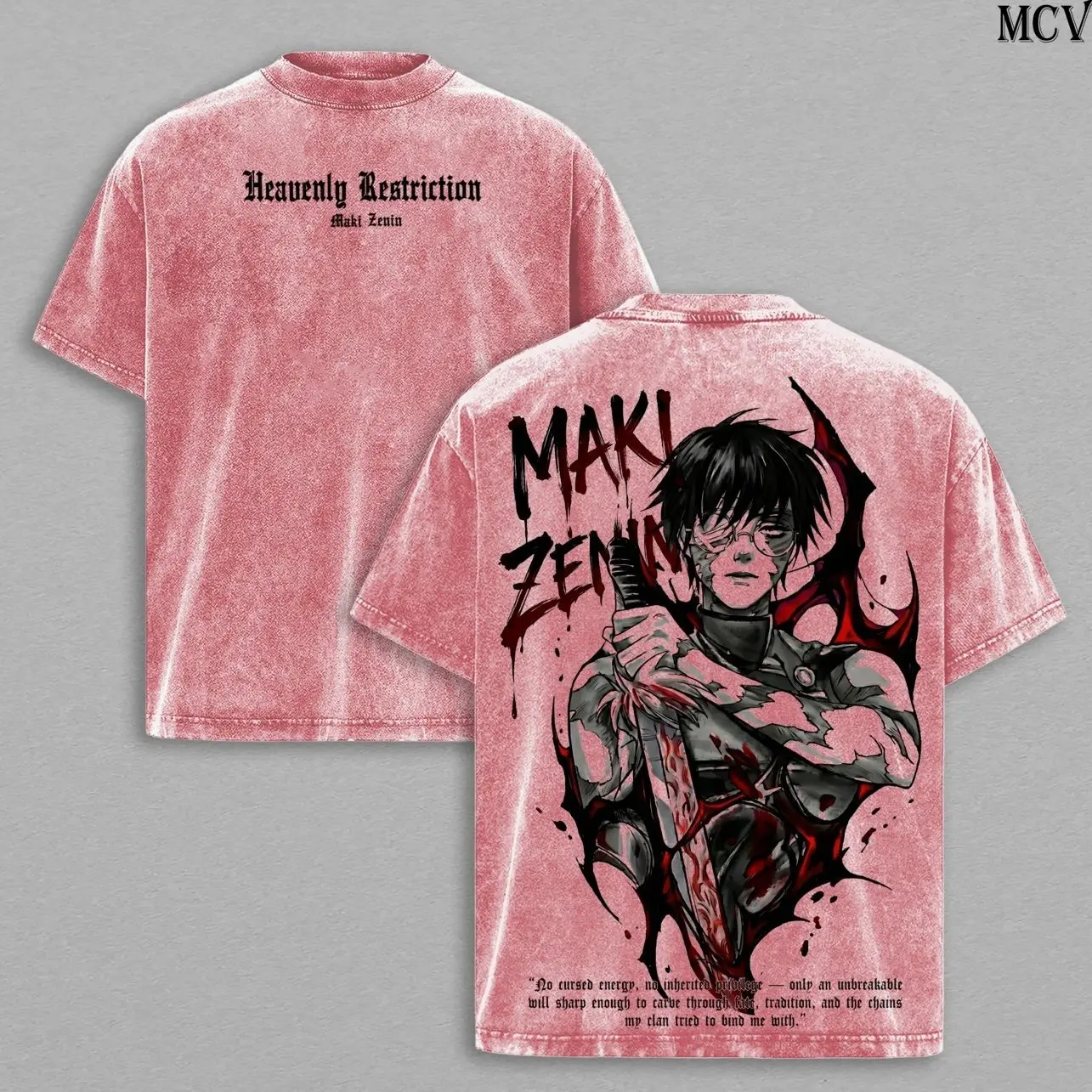 Maki Zenin Jujutsu Kaisen T-Shirt & Hoodie – Vintage Washed Oversized Anime Tee, Dark Aesthetic Maki Manga Graphic Shirt, Heavy Cotton Unisex Streetwear JJK Merch, Fall Outfit Anime Gift G7W