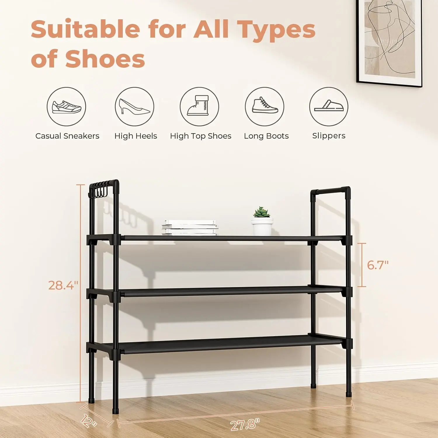 ·3 Tier Shoe Rack: Perfect for closets, entryways, garages, and small spaces. Stackable and free-standing, it fits seamlessly into any area.