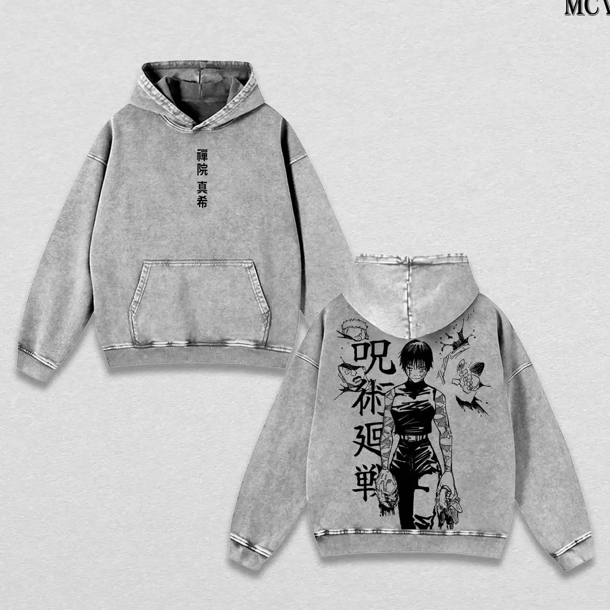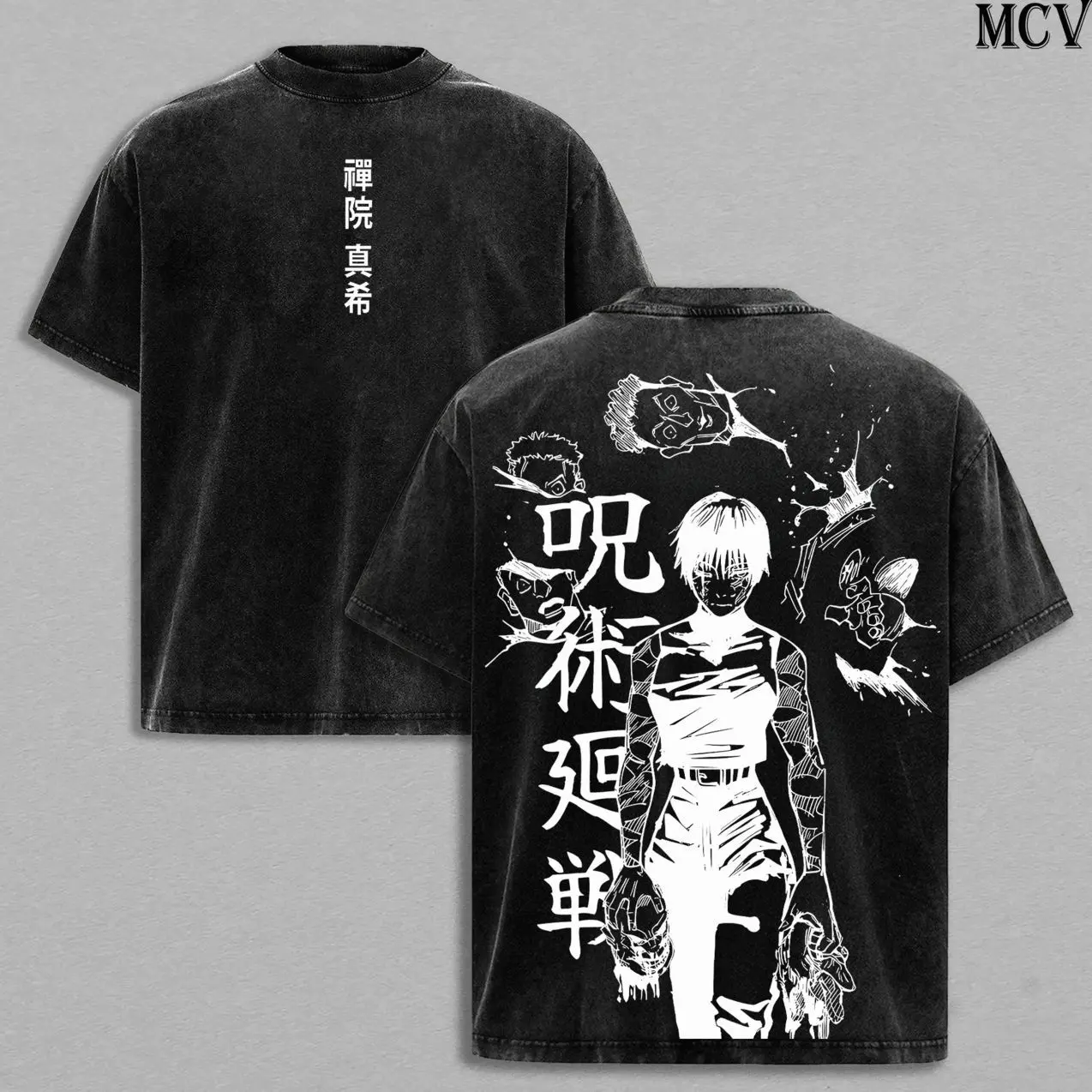 Maki Zenin Tee Washed – Jujutsu Kaisen Vintage Washed & Acid Wash Heavy Cotton Oversized Anime Manga T-Shirt & Hoodie, Dark Aesthetic Double Printed Retro Unisex Streetwear Graphic Top, Heavenly Restriction Edition 0GM