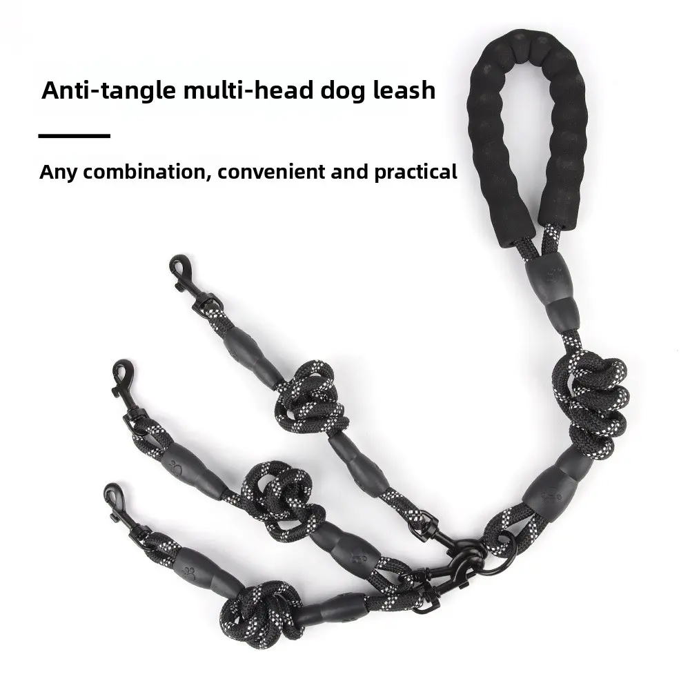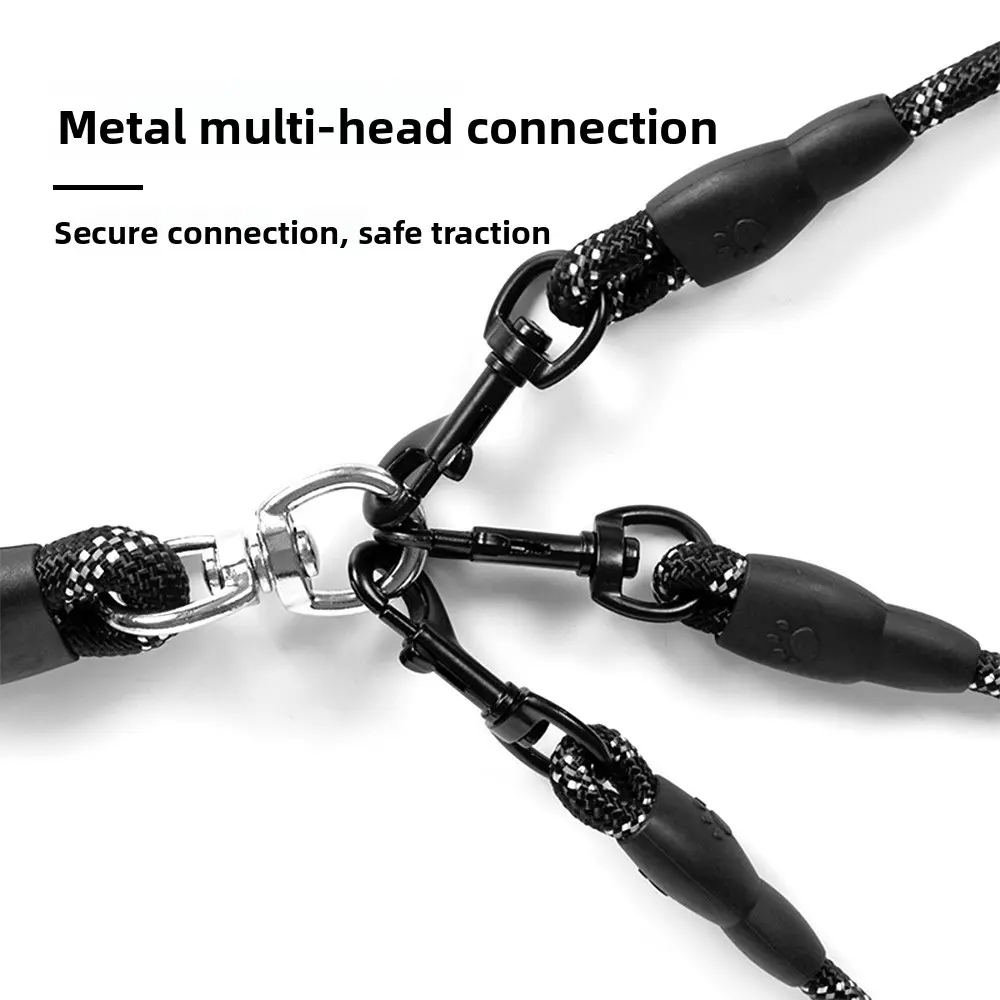 3-in-1 Reflective Dog Leash for Medium Large Dogs, Heavy Duty 3 Way No Tangle Multiple Dog Leash with 360° Swivel Clips, Comfortable Anti-Slip Padded Handle, Detachable Flexible Combination Pet Walking Lead, High Visibility Reflective Safety Dog Leash for