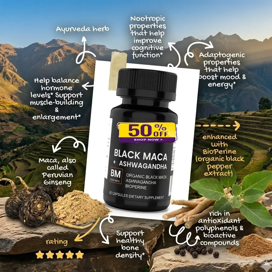 Unlock Natural Vigor: Daily Black Maca & Ashwagandha