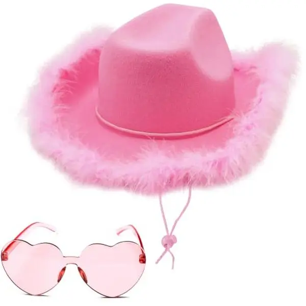 GET YOUR COWGIRL ON!: Hosting a bachelorette cowgirl hats bash or a western-themed event? This cowgirl hats party pack is the perfect fit. With its preppy style and fluffy feather details, the pink cowboy hat adds the perfect touch to any party. The set, including the pink cowboy hat with heart shaped sunglasses, is great for cowgirl hats women looking to add some sass to their outfit!