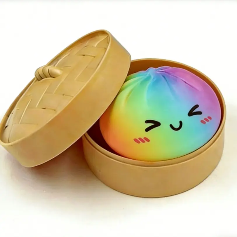 Check out this upgraded colorful bao bun squishy toy. It measures 9.5cm x 6cm which fits perfectly in your palm for squeezing. Made of soft TPR material it is safe and odor free. Super stretchy and durable for endless play. Great for adults to relieve stress and for kids to build focus and sensory skills. Perfect as desk decor party favors or classroom rewards. Pull it stretch it squish it — you won't want to put it down.