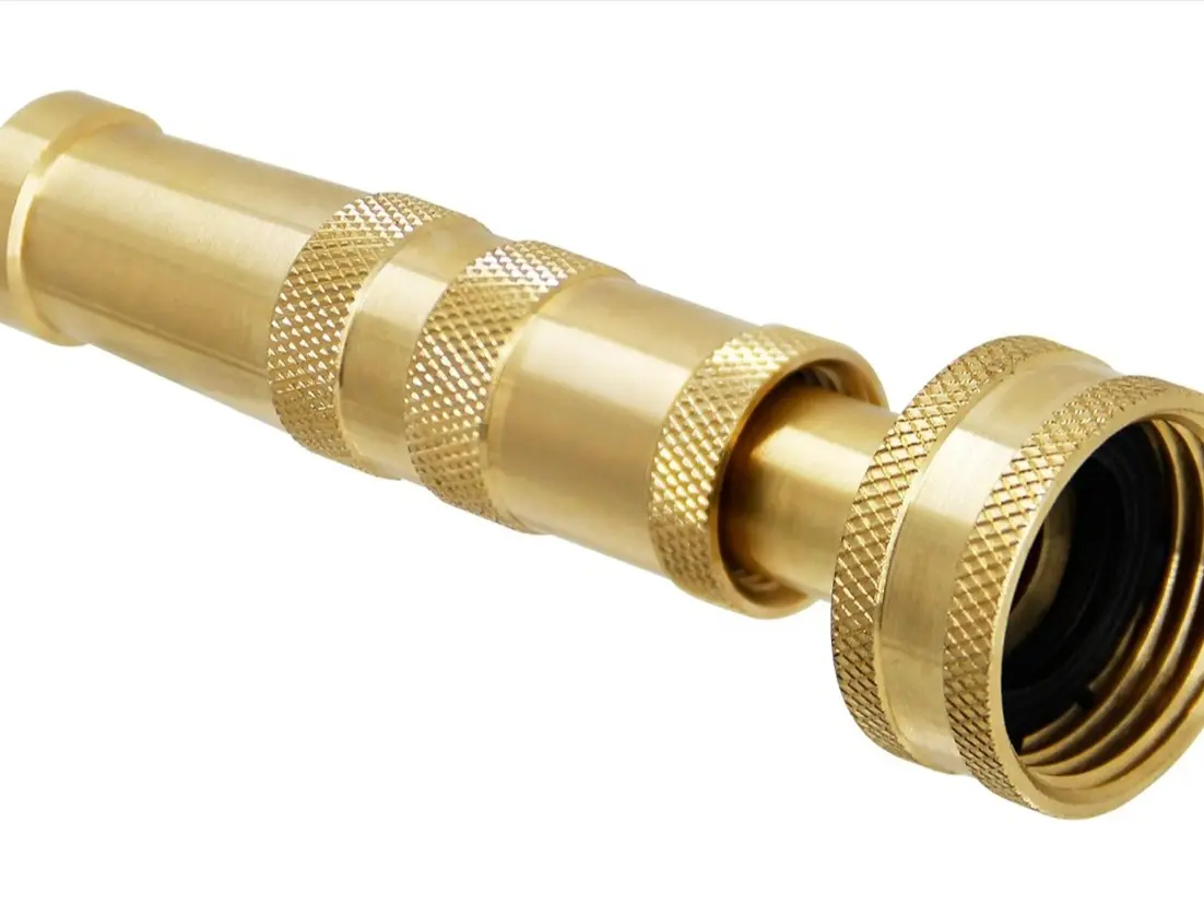 EASY ADJUSTMENT - This brass hose nozzle features twisting barrel to adjusts water from a fine mist that's great for delicate plants to a powerful jet stream for knocking off caked on mud.
