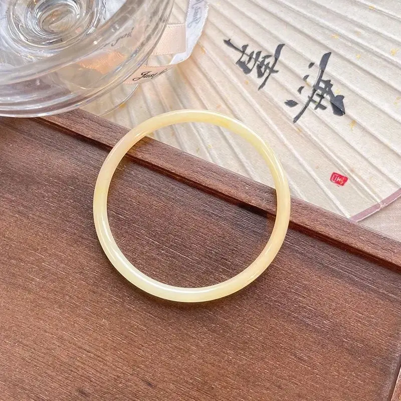 This bracelet is made ofglass imitation jade, not natural jade. During high-temperature production, small air bubbles, tiny pinholes (inside or outside), minor surface unevenness, or slight color/vein variations may occur naturally-these are not defects, but unique characteristics of the handcrafted process.