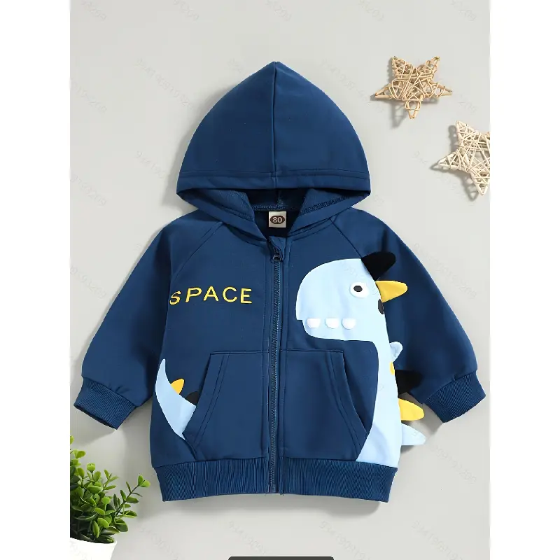 (New)Autumn And Winter Boys' Clothing Jacket, Cute Dinosaur Zip-Up Hoodie