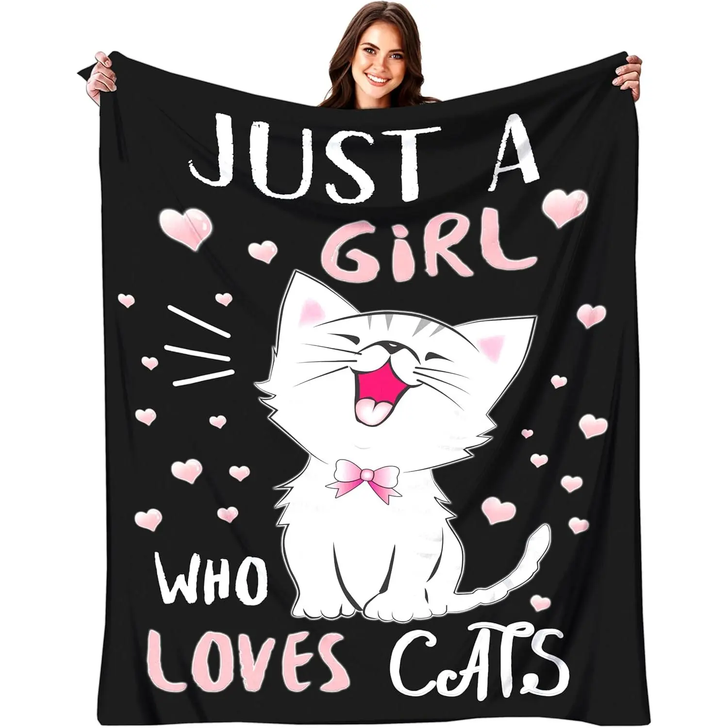 Cat Blanket Gifts for Women Cat Lovers Soft Flannel Kawaii Throw Blanket for Kids Adults 50"x40" : Home & Kitchen