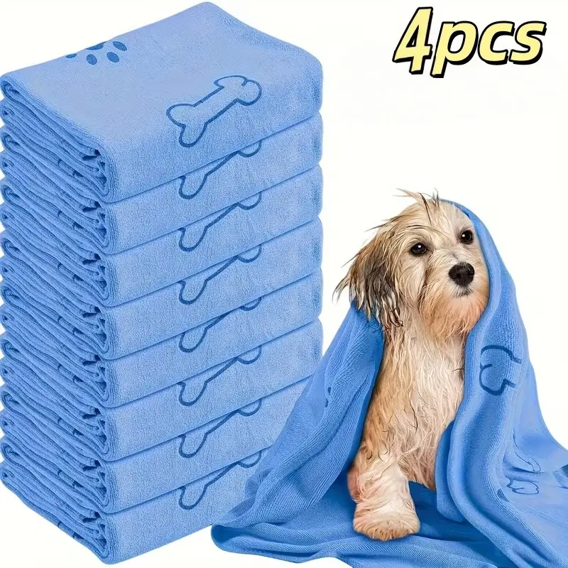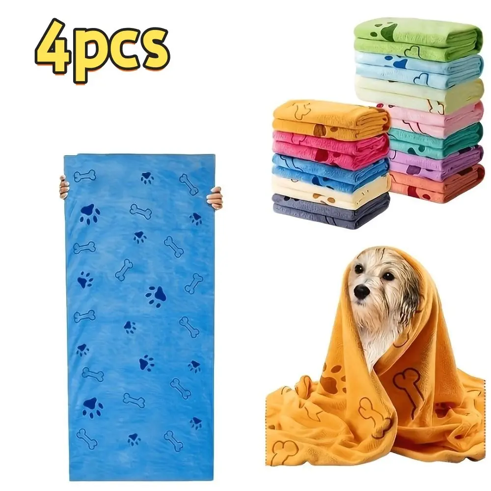 4-Pack Dog Towels, Quick-Dry Microfiber Pet Bath Towels, Medium Size, Durable and Easy to Use, Ideal for Dogs and Cats