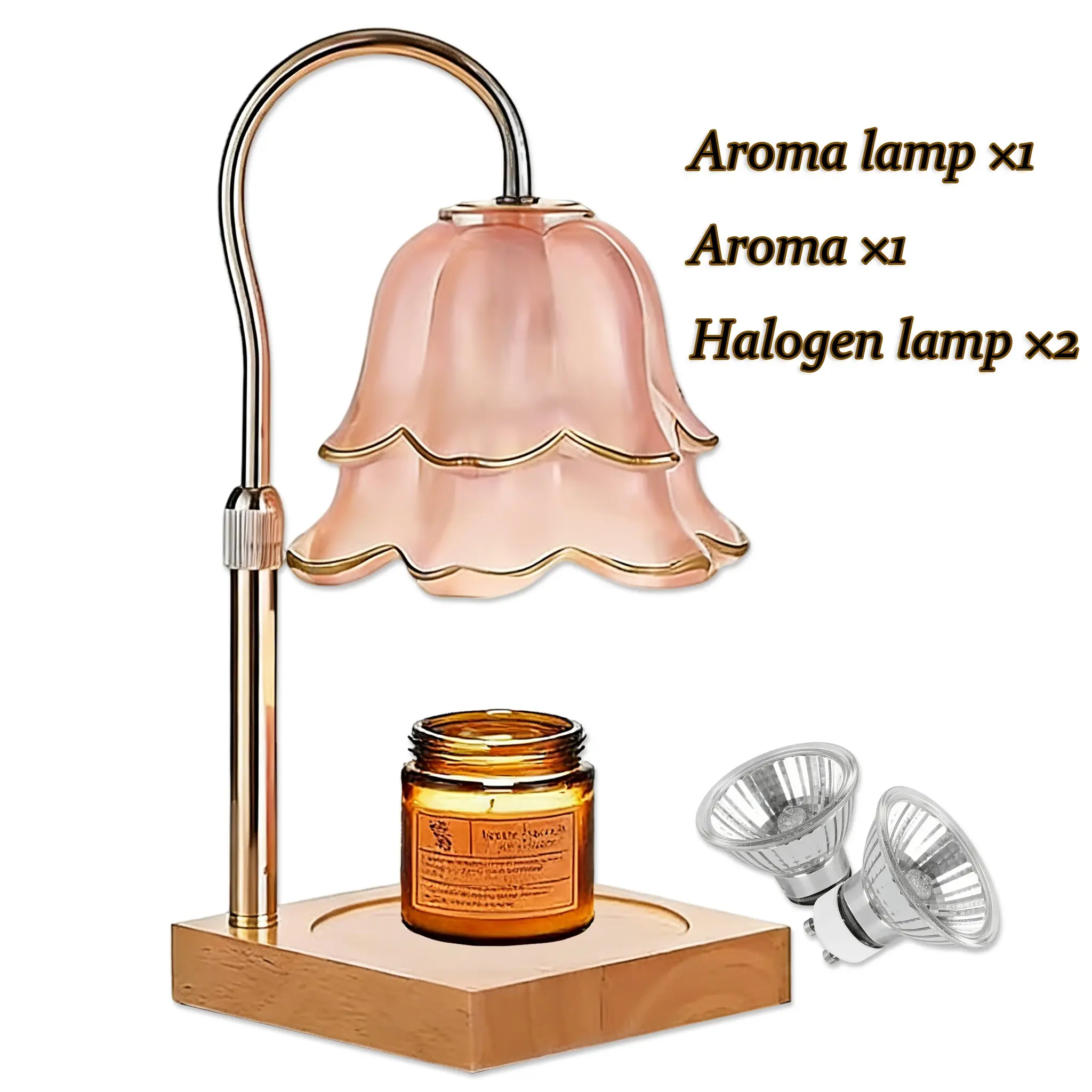 Mother's Day gift Gold Floral Candle Warmer Lamp with Timer & Height Adjustable Base, Flameless Fragrance Lamp for Bedroom & Home Decor
