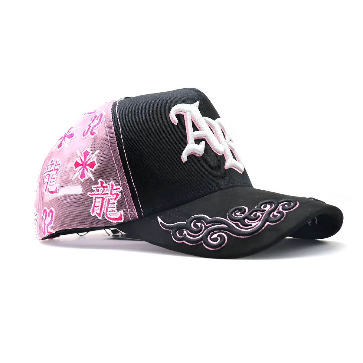 Pink & Black Dragon Embroidery Flat-Brim Cap — Oriental-Style Hip-Hop Baseball Cap: An Essential, Trendy Streetwear Accessory
