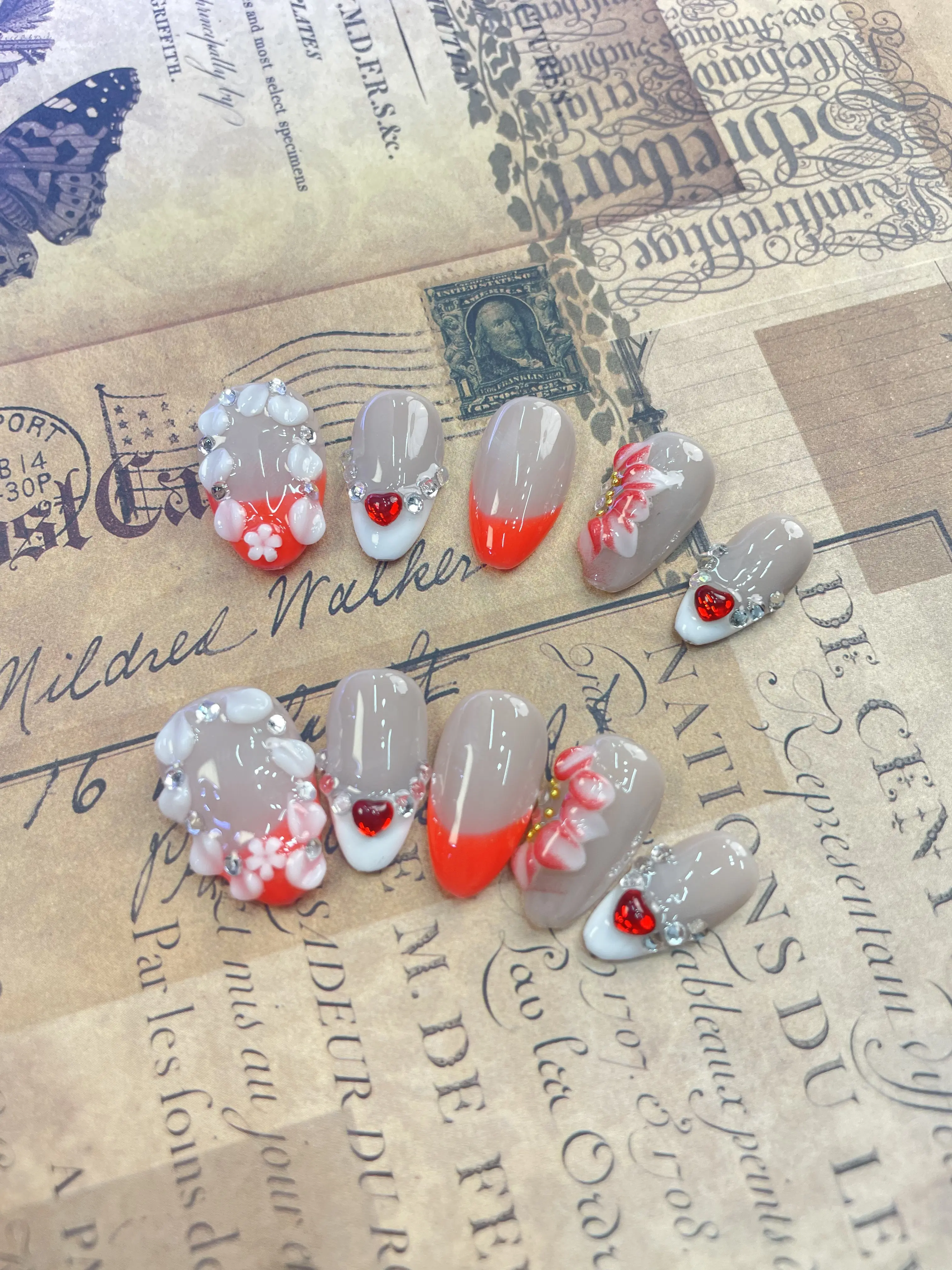 Each set features a random style, ensuring a unique look every time. The variety adds a fun element to your nail game. The nails are adorned with a beautiful butterfly design, adding a touch of elegance.