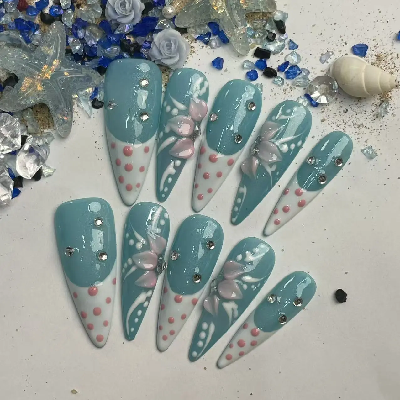 These nails are decorated with sparkling accents, making them stand out. The combination of design and sparkle ensures you always look stylish. With 20 sets, you can easily switch up your look. Enjoy the beauty of these handmade nails.