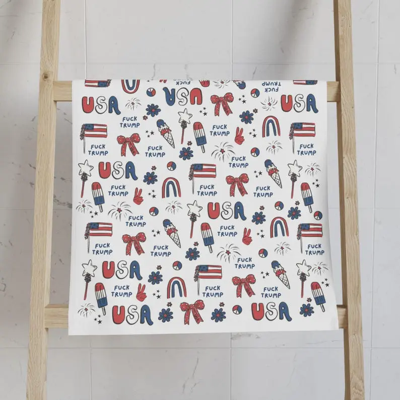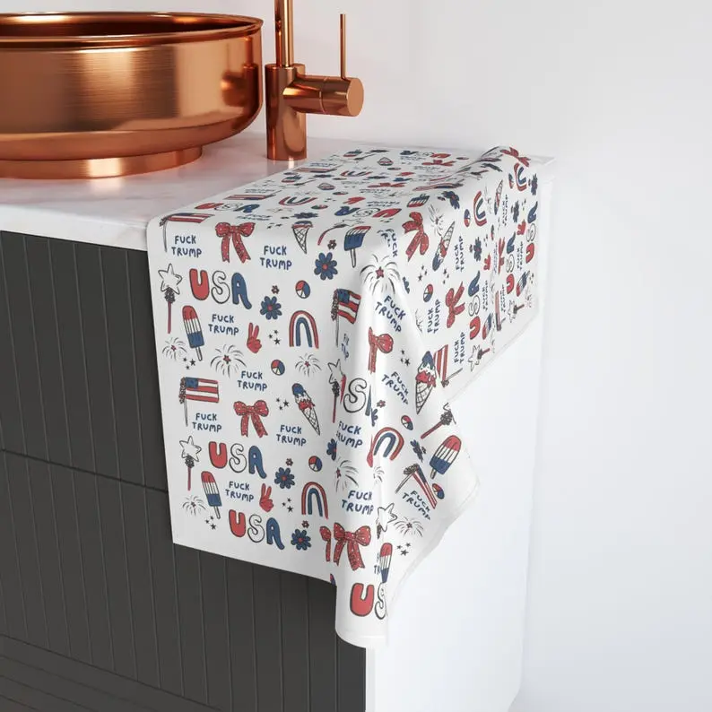 Subtle F*ck Trump Hand Towel, Funny Political Home Decor, Fourth of July Kitchen Towel, 4th of July Home Decor, Liberal Gag Gift, FDT Towel