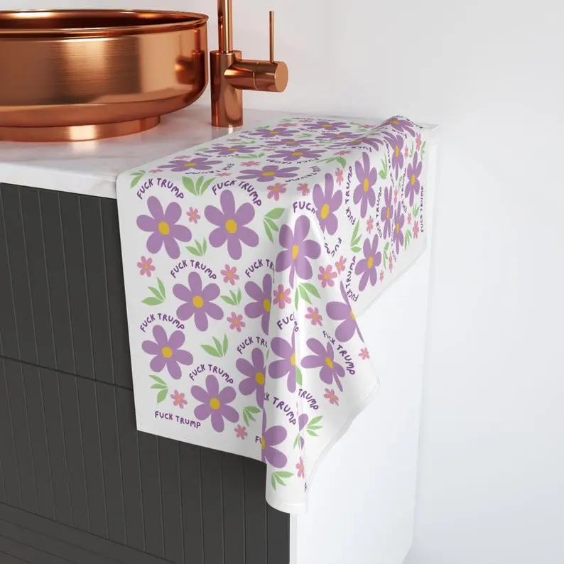Subtle F*ck Trump Hand Towel, Funny Political Home Decor, Daisy Kitchen Towel, Daisies Home Accessory, Sarcastic Liberal Gag Gift, FDT Towel