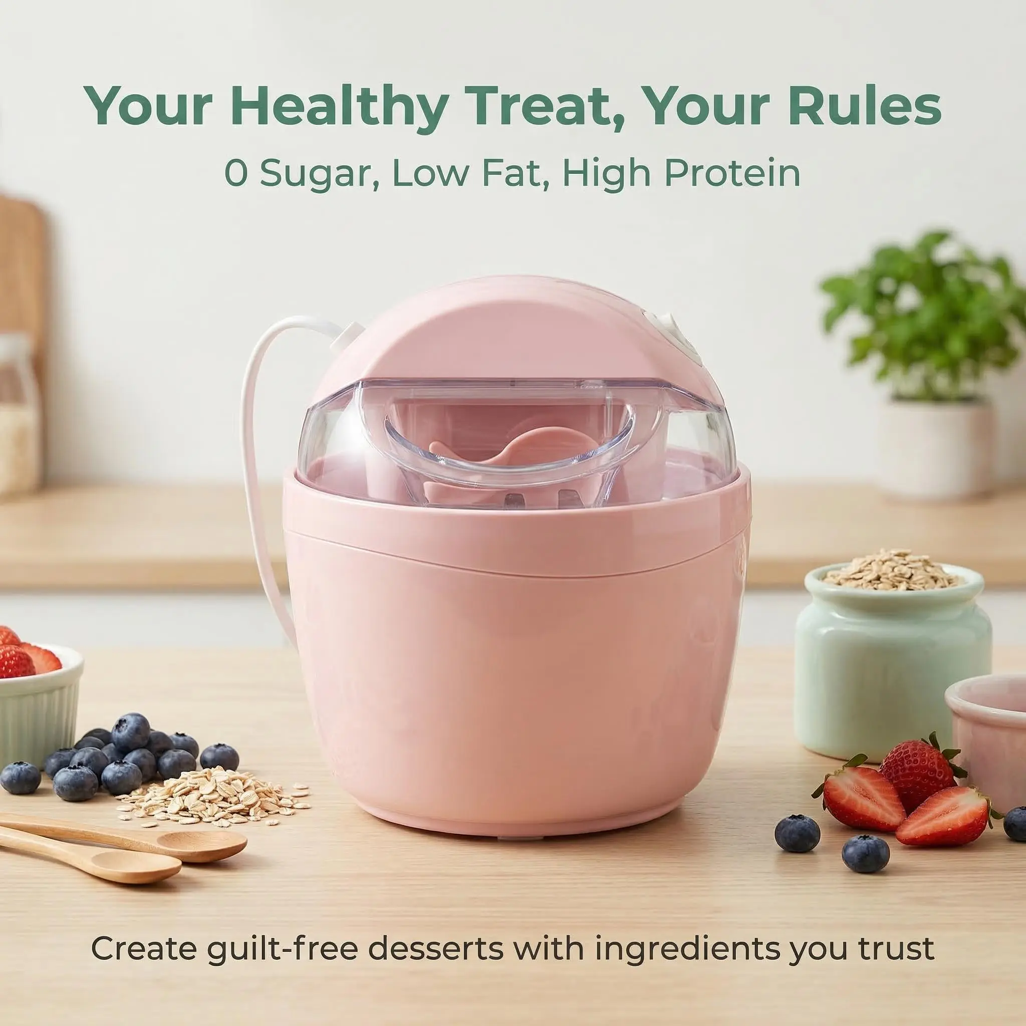 Craving ice cream? Now you can make your own fresh, creamy frozen treats at home in just 15 minutes. This compact electric ice cream maker features an automatic stirring system, so all you need to do is add your ingredients, press a button, and enjoy — no skills required. Perfect for creating your favorite flavors like chocolate, fruit, yogurt, or even protein ice cream, giving you full control to make low sugar, low calorie, or high protein desserts that fit your lifestyle.