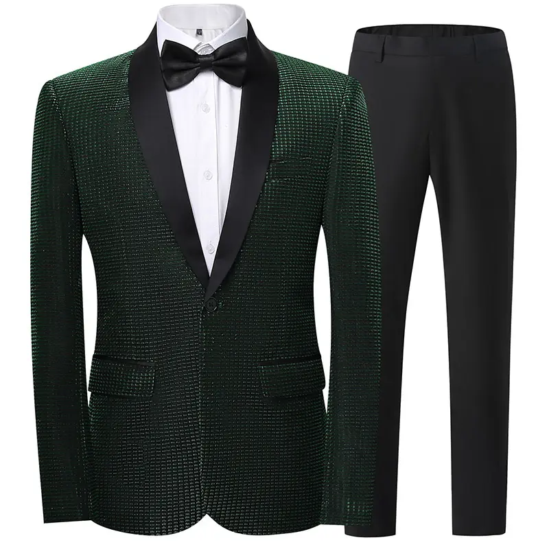 Men's Stand Collar Mandarin Suit Slim Fit Stage Performance Groom Tuxedo, Young Men's 2 Piece Formal Wear