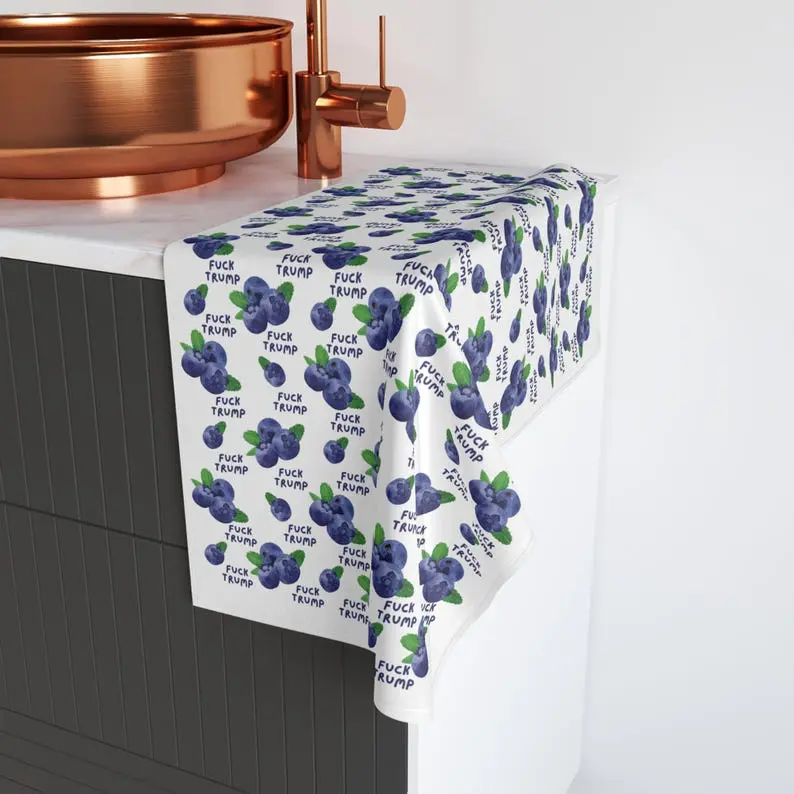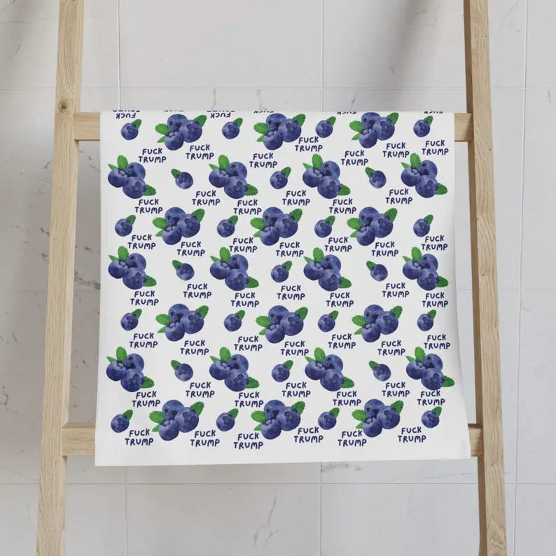 Subtle F*ck Trump Hand Towel, Funny Political Home Decor, Blueberries Kitchen Towel, Blueberry Home Decor, Liberal Gag Gift, FDT Bath Towel