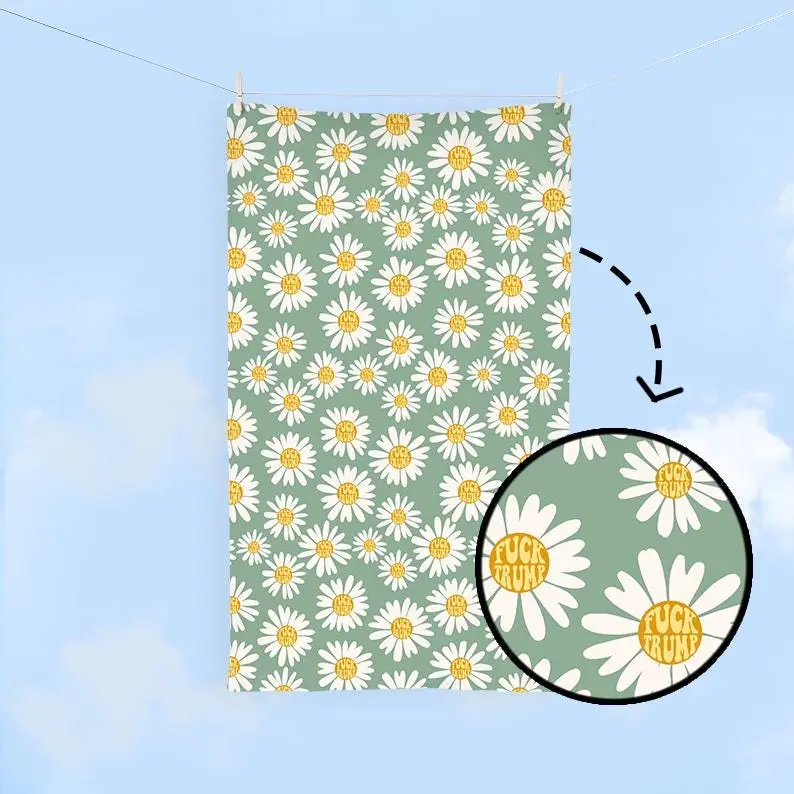 Subtle F*ck Trump Hand Towel, Funny Political Home Decor, Daisy Kitchen Towel, Daisies Home Accessory, Sarcastic Liberal Gift, FDT Towel