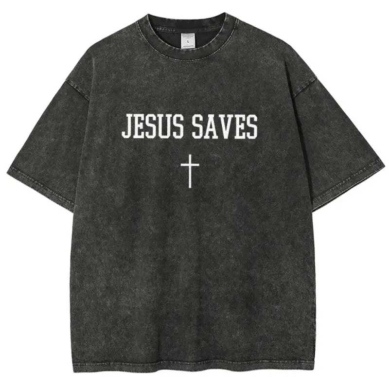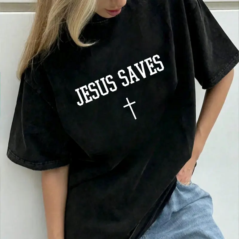 Jesus Saves Unisex Fit Washed T-Shirt, Bible Verse Shirts Women, Soft and Comfortable Fit Tops for Everyday Wear Casual Outfit t shirts women oversized tshirt women