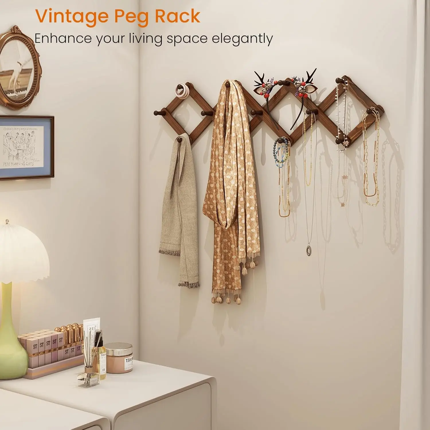 This peg rack is a must-have for keeping your space organized and clutter-free. Its adaptability makes it a valuable tool for any home or office.