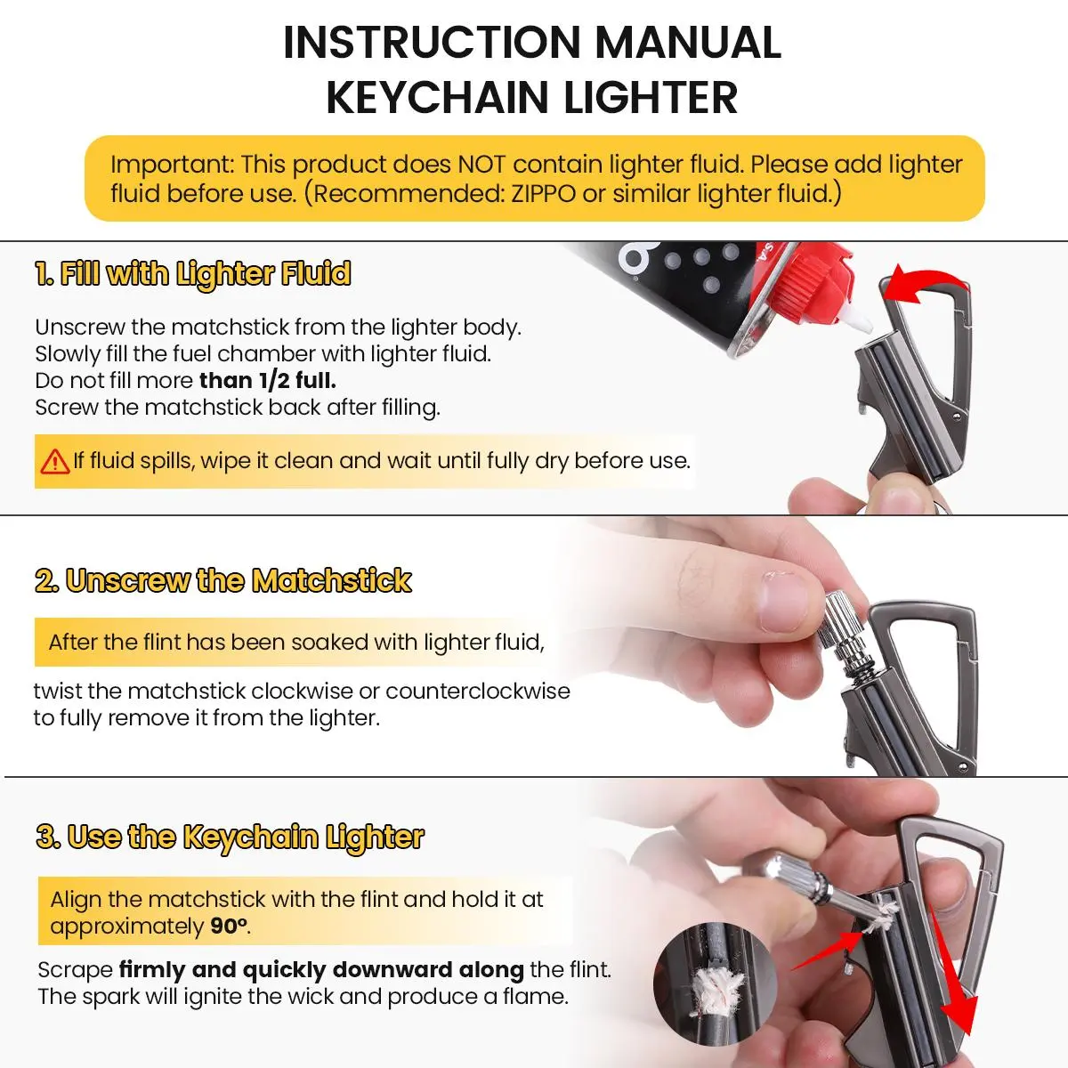 When you're far from home, this keychain is your survival ally. From lighting campfires to opening bottles, it's always there when you need it. Just add kerosene, and you're ready for anything. 🌞