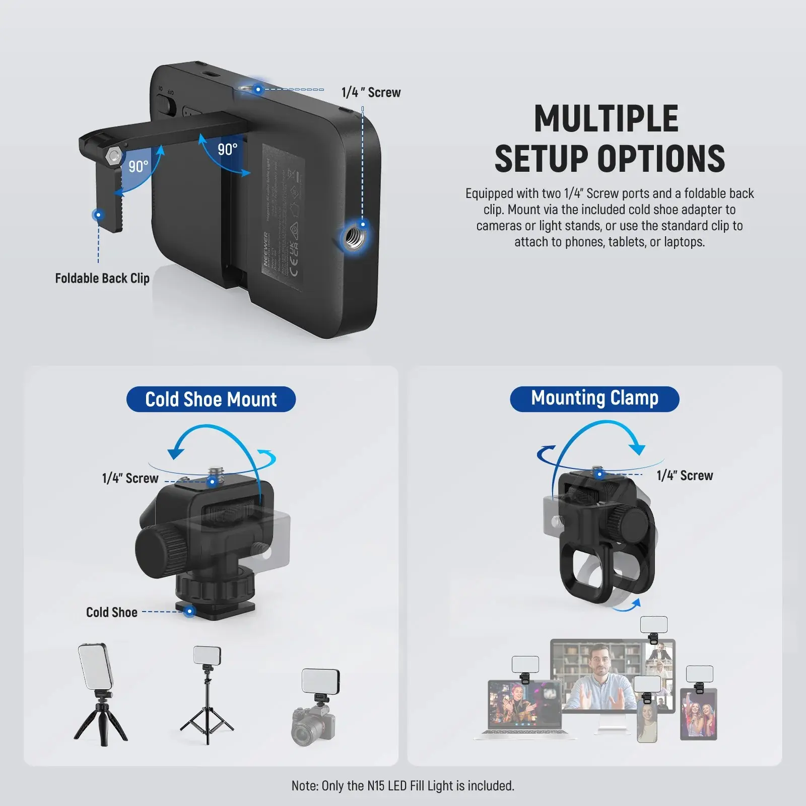 ·Introducing NEEWER ENTRY LEVEL VERSION- Even simpler than BASICS, NEEWER ENTRY LEVEL VERSION is designed with ultimate simplicity and affordability in mind, perfect for absolute beginners who only need the most essential functions without any complexity or extras. The N15 is a compact yet powerful LED selfie light, featuring multiple setup options, adjustable brightness, and customizable color tones, as essential/must have for content creators, streamers, and social media influencers on the go