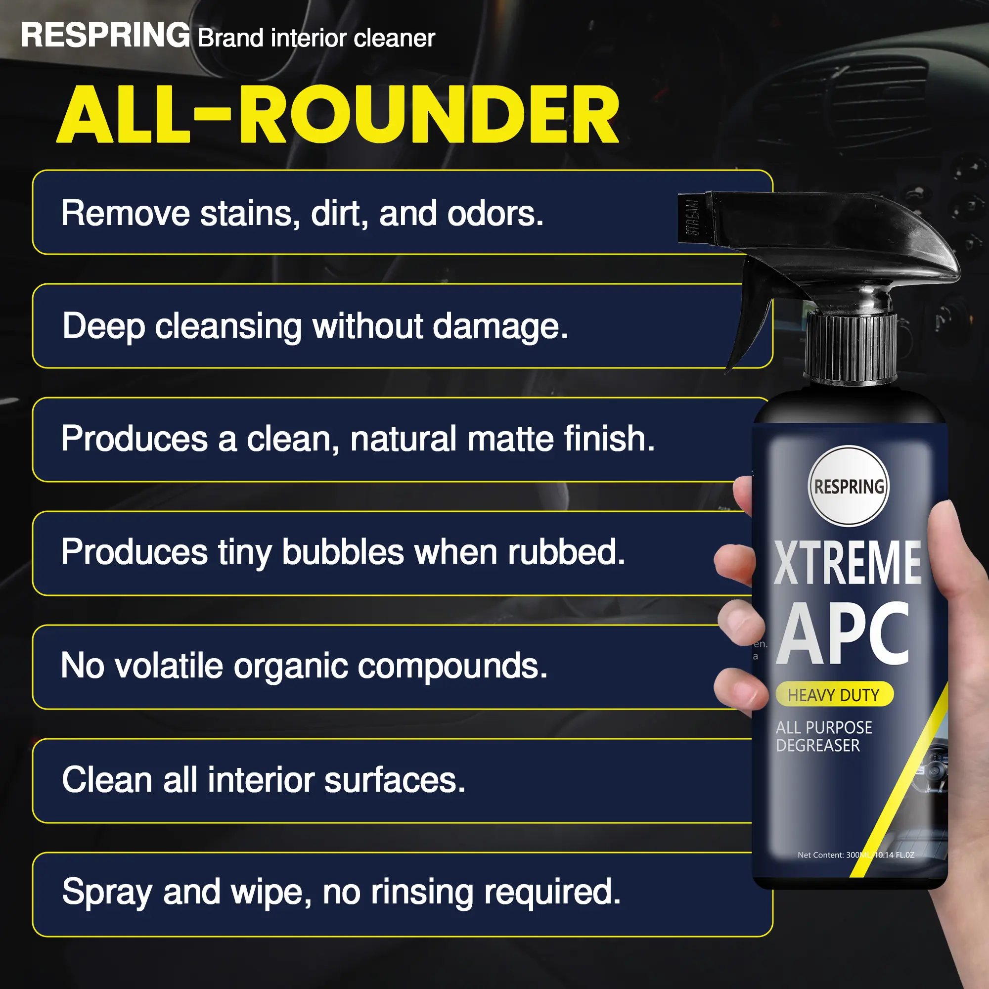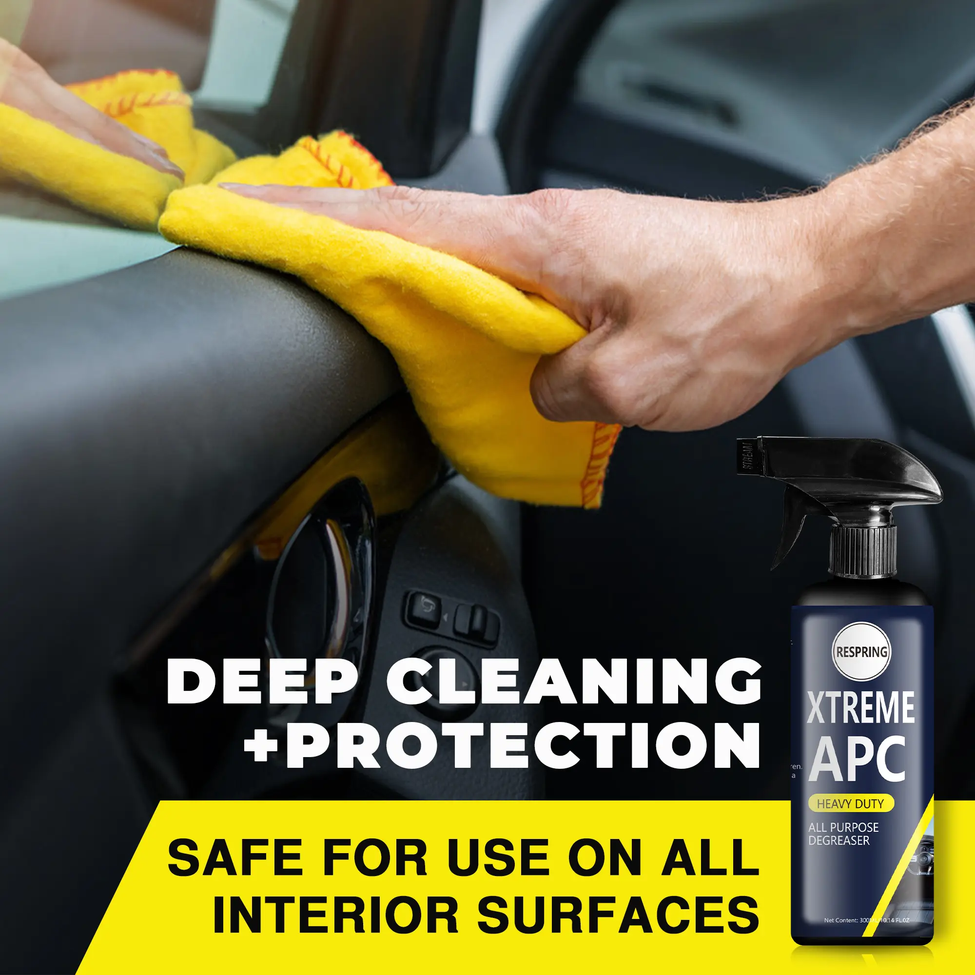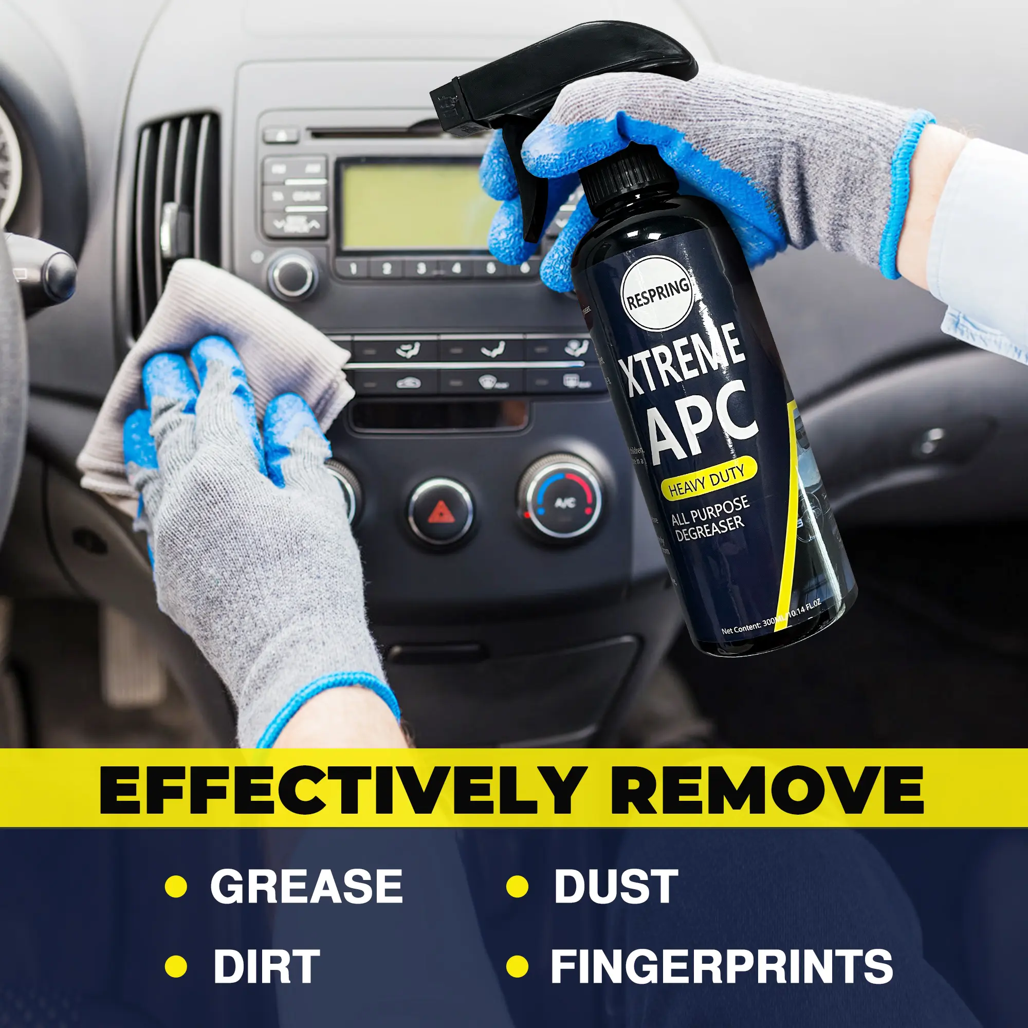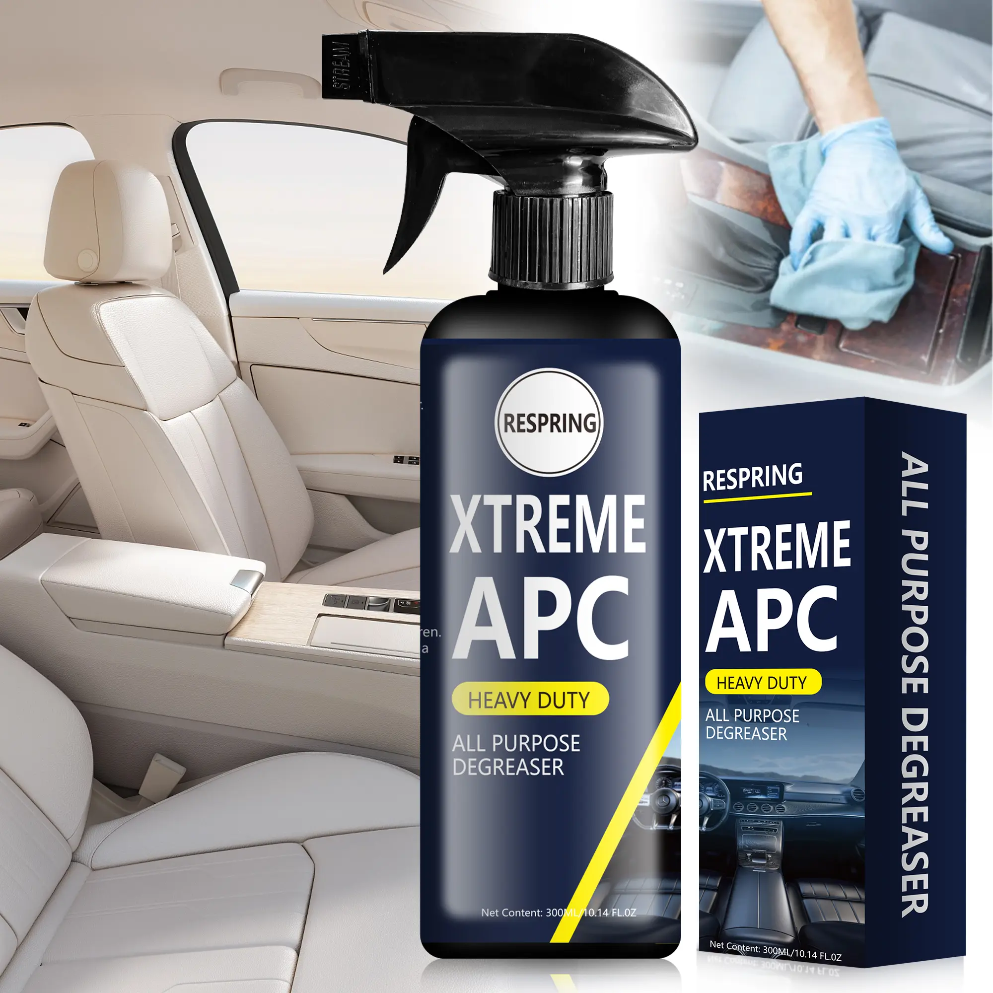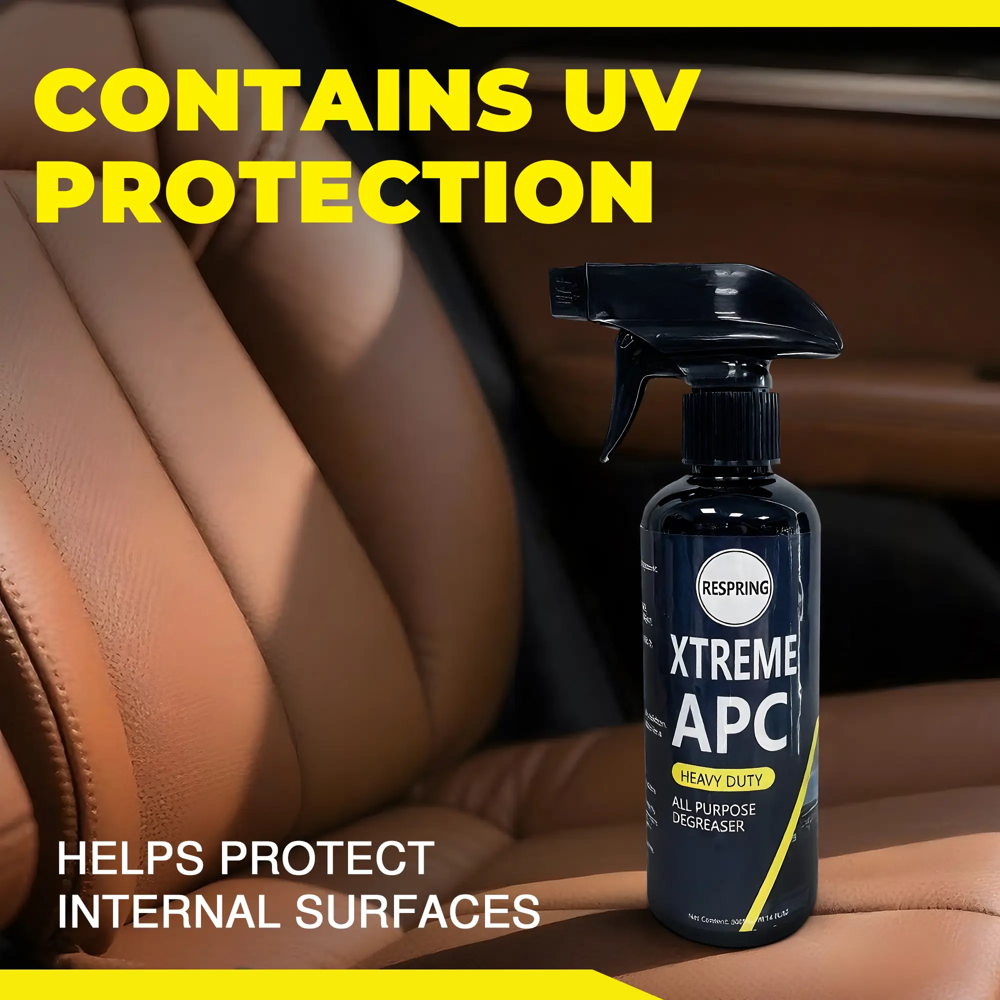 Respring Xtreme APC is a 300ml multi-surface car cleaner designed for effective degreasing. Ideal for various surfaces, this degreaser tackles tough grime effortlessly. Perfect for car enthusiasts and professionals alike, it ensures a clean finish.