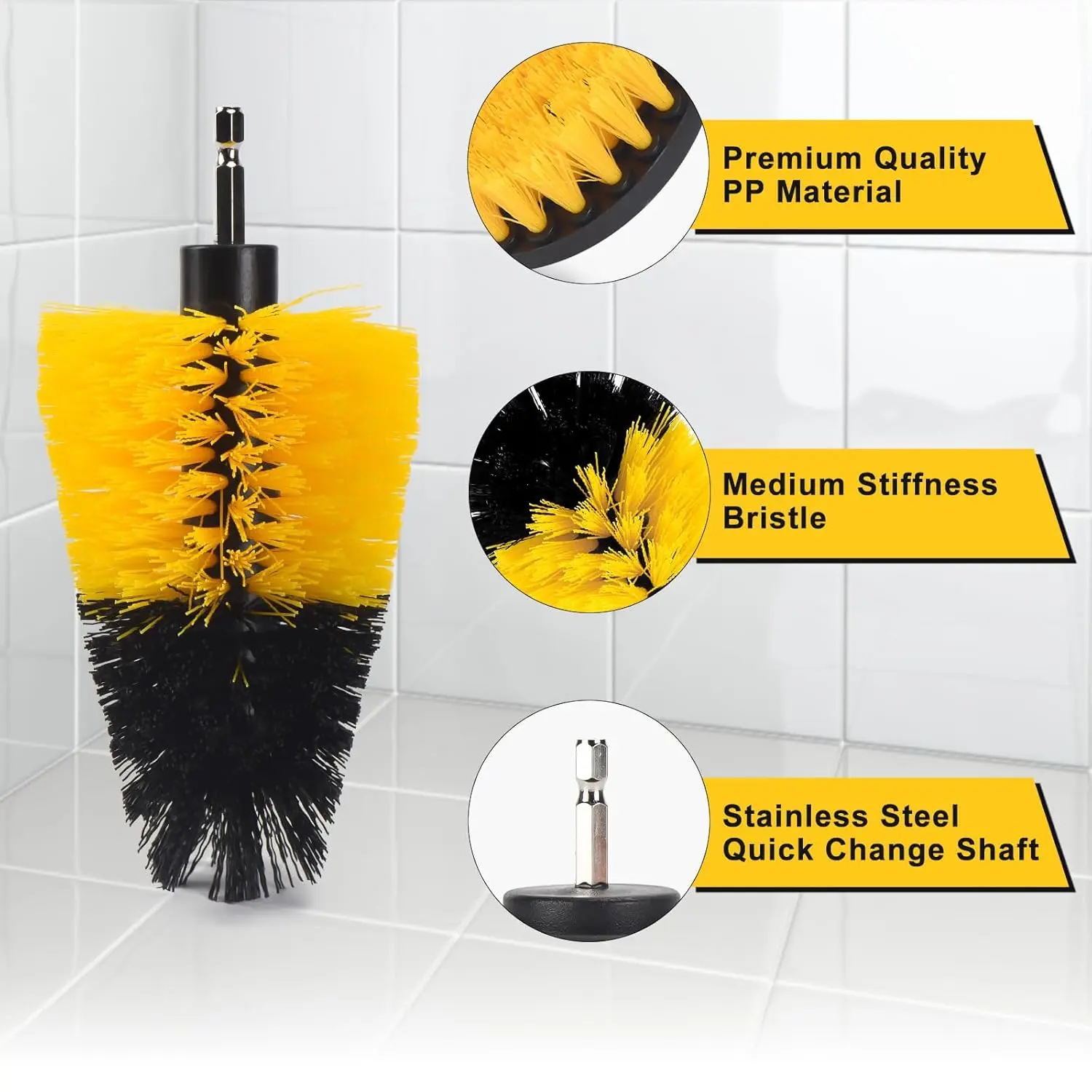 ·【Universal Fit】Connect it to a cordless drill or impact drive and it becomes a powerful cleaning tool. Brushes equipped with 1/4 inch quick change shaft to fit most drills. The metal shaft is treated with nickel plating to ensure moisture and rust prevention.
