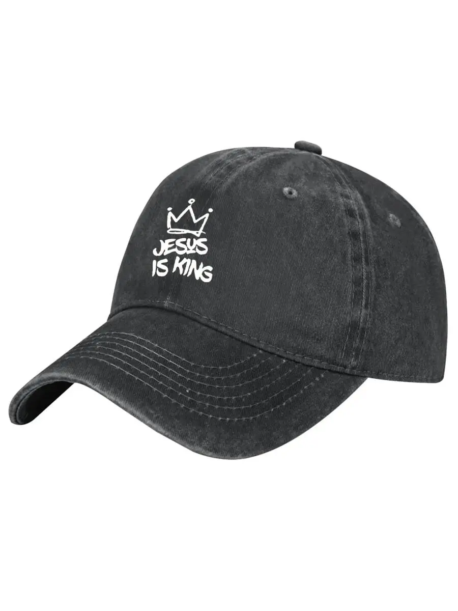Christian Jesus Is King Crown Vintage Cotton Baseball Cap Religious Faith Dad Hat for Casual Wear Sports Statement Piece