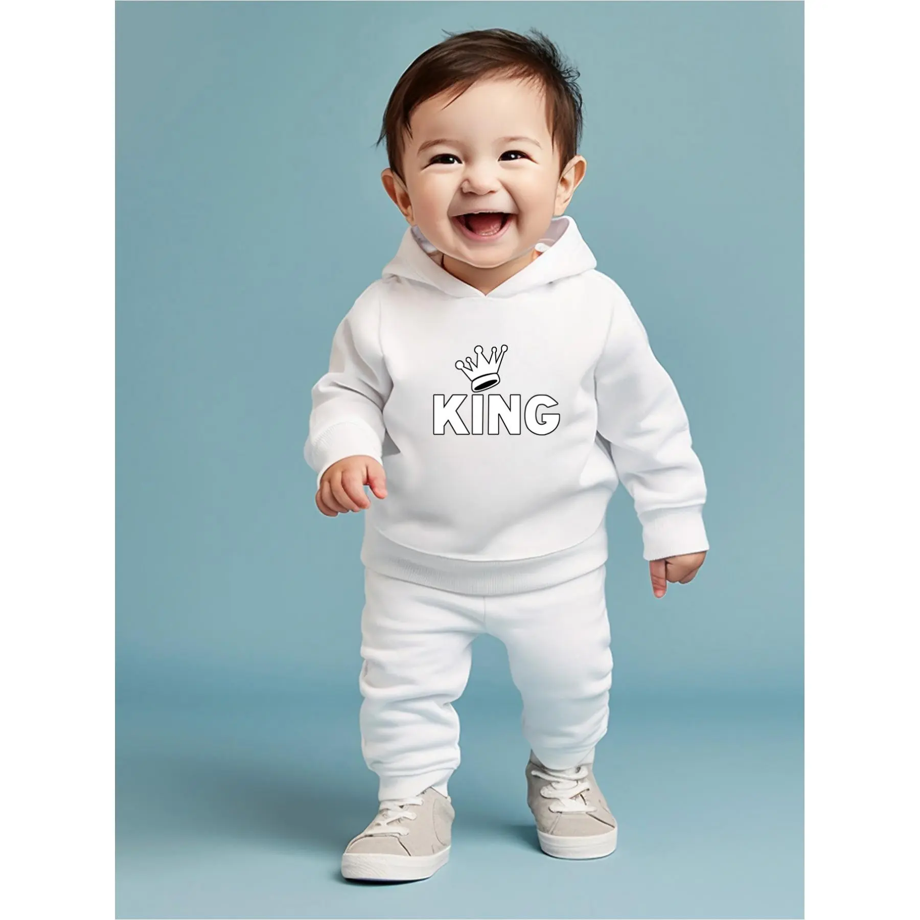(New)Baby Kids fashion Long Sleeve Hoodie Set, Cartoon Crown and Letter Print, Boys Pants Two Piece Set