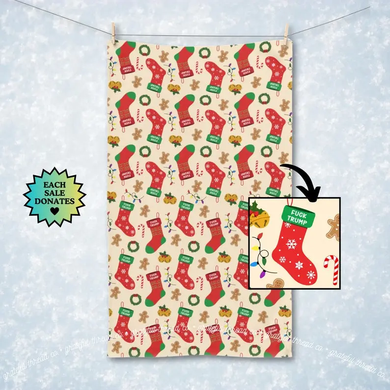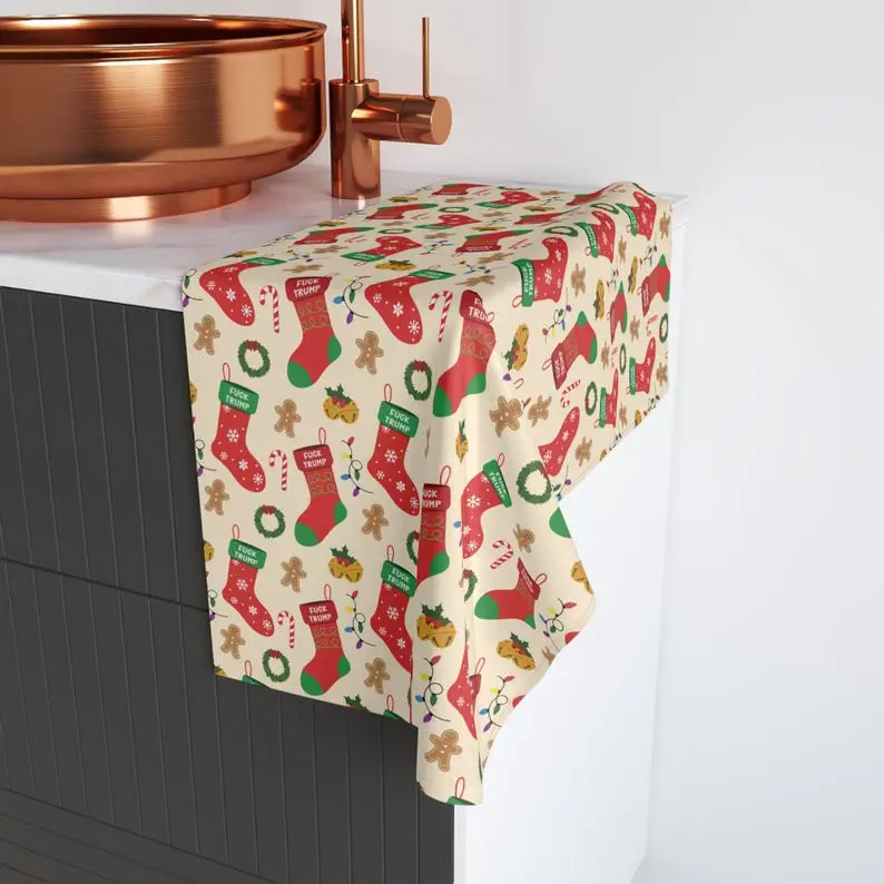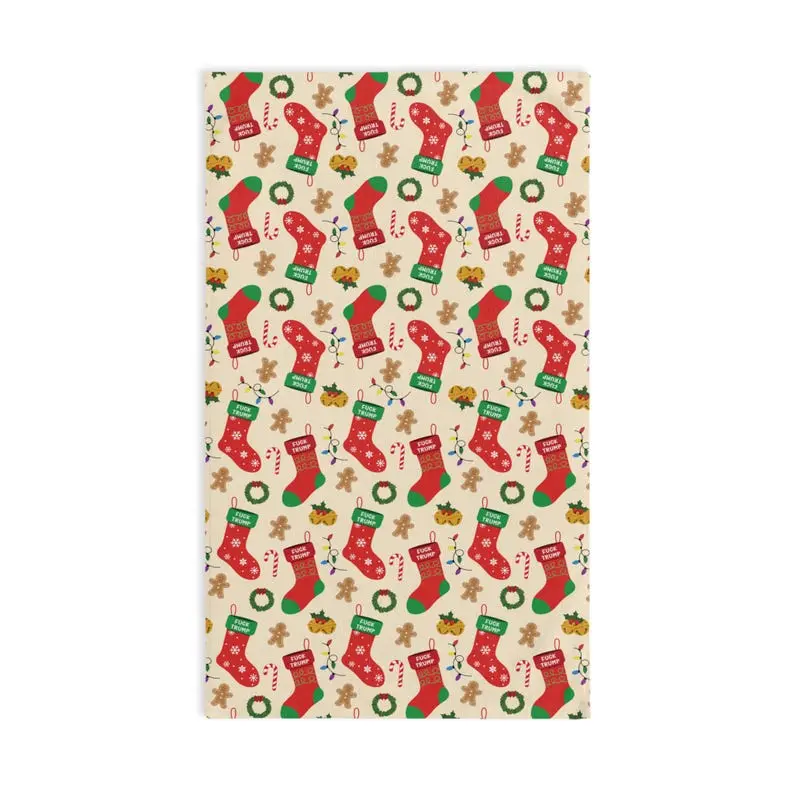 Subtle F*ck Trump Christmas Stocking Hand Towel, Political Home Decor, Festive Kitchen Towel, Funny White Elephant Gift, FDT Holiday Towel
