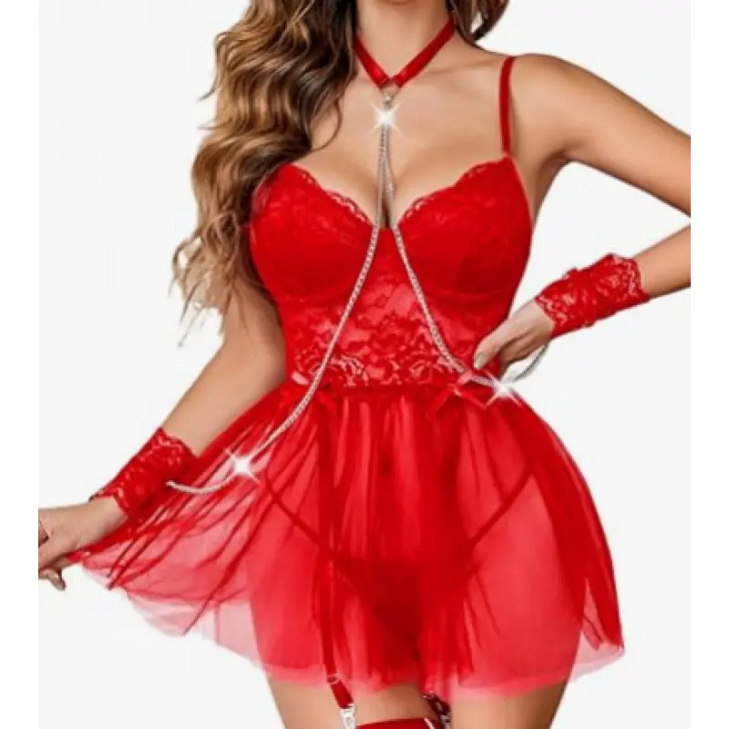Sexy lingerie, erotic underwear, front-slit nightgown, mesh temptation uniform