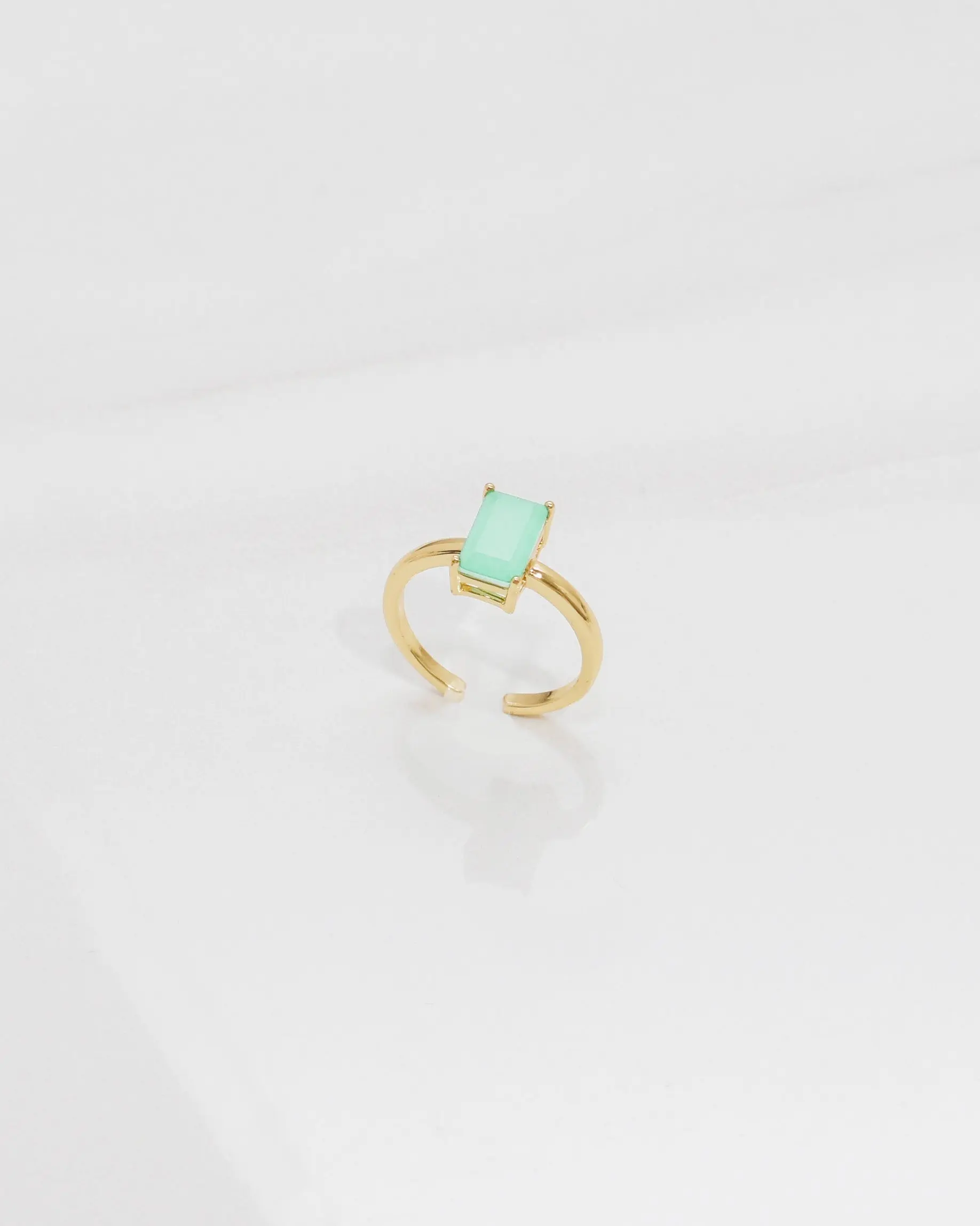 This Rectangle Aventurine Gold Adjustable Ring is a must-have for any jewelry collection. The stainless steel material with 18k plating ensures a non-tarnish, hypoallergenic design. Its adjustable feature allows for a perfect fit and the beautiful aventurine stone adds a touch of elegance to any outfit.