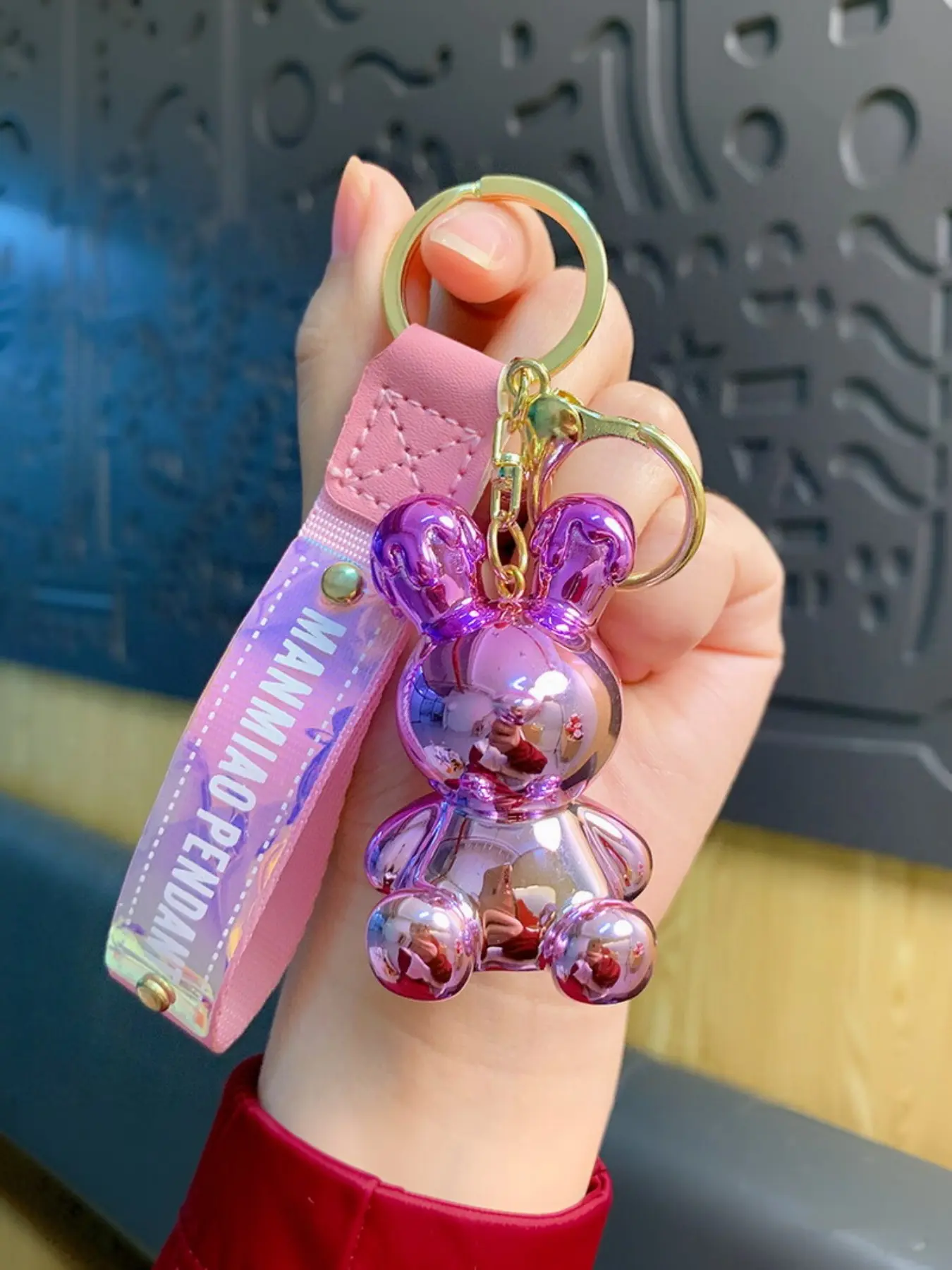 Creative Gradient Bunny Keychain, Cartoon Couple Car Bag Accessory, Rabbit Key Ring Small Gift, Holiday Gift for Friends and Besties