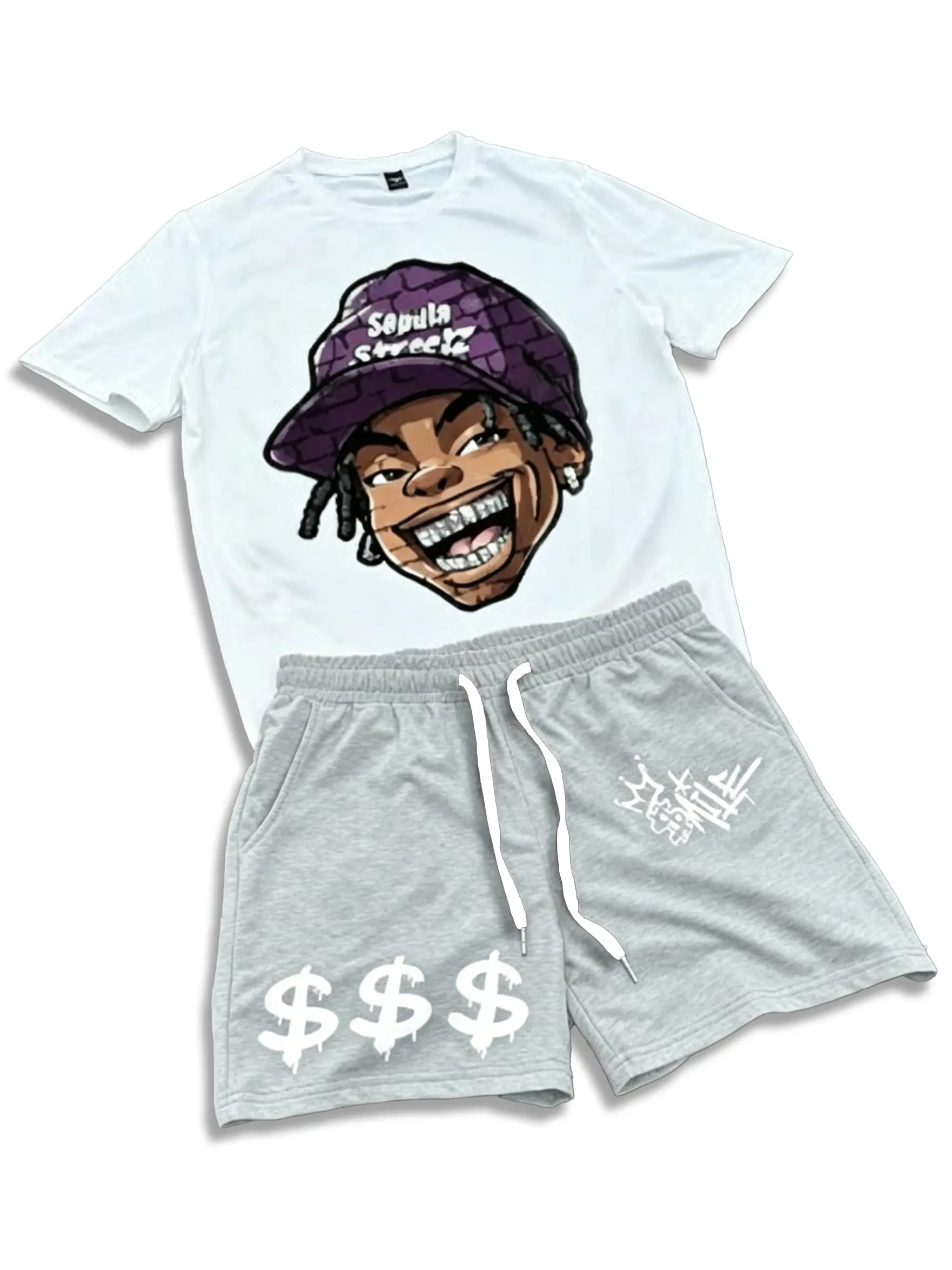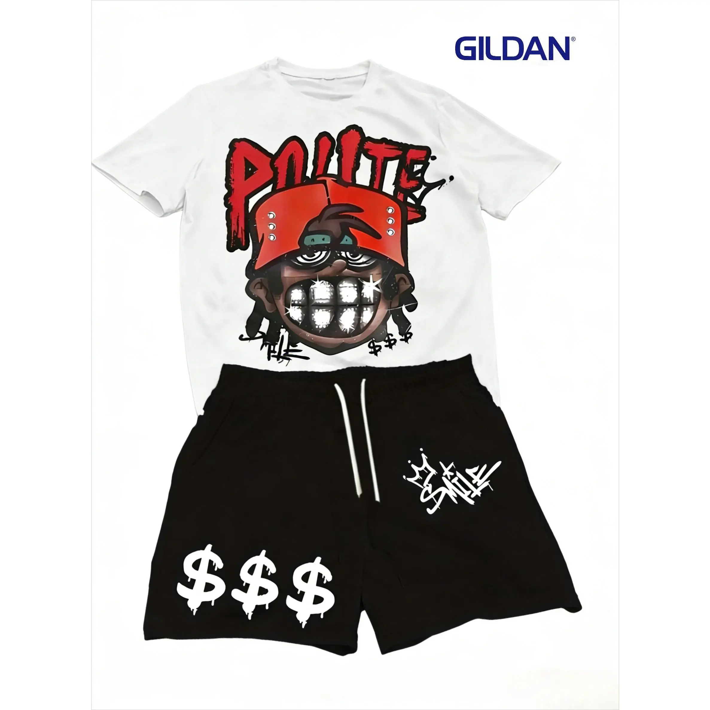 Gildan 2-Piece Set S-3XL | Cartoon Boy Printed Sport T-Shirt & Shorts Suit | Men’s American Tracksuit Outfit | Premium Cotton Summer Activewear | Trendy Plus Size Streetwear Bundle | Soft Breathable Casual Set for Men | Must-Have Summer 2026