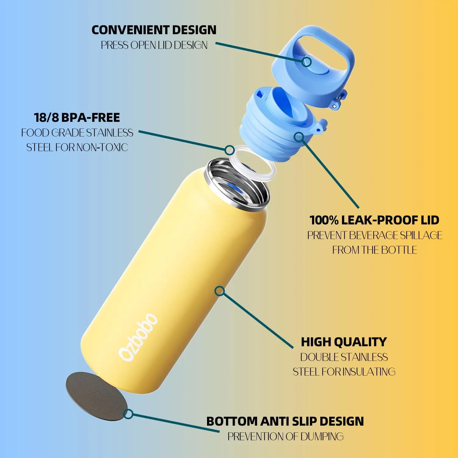 5. 20 OZ Water bottle with Quick Fill Technology, Double Walled Vacuum Insulated Bottle For Women Man, 100% Leak Proof Locking Lid, Sip & Chug, BPA Free, Holiday Gift for Him Her(Yellow)