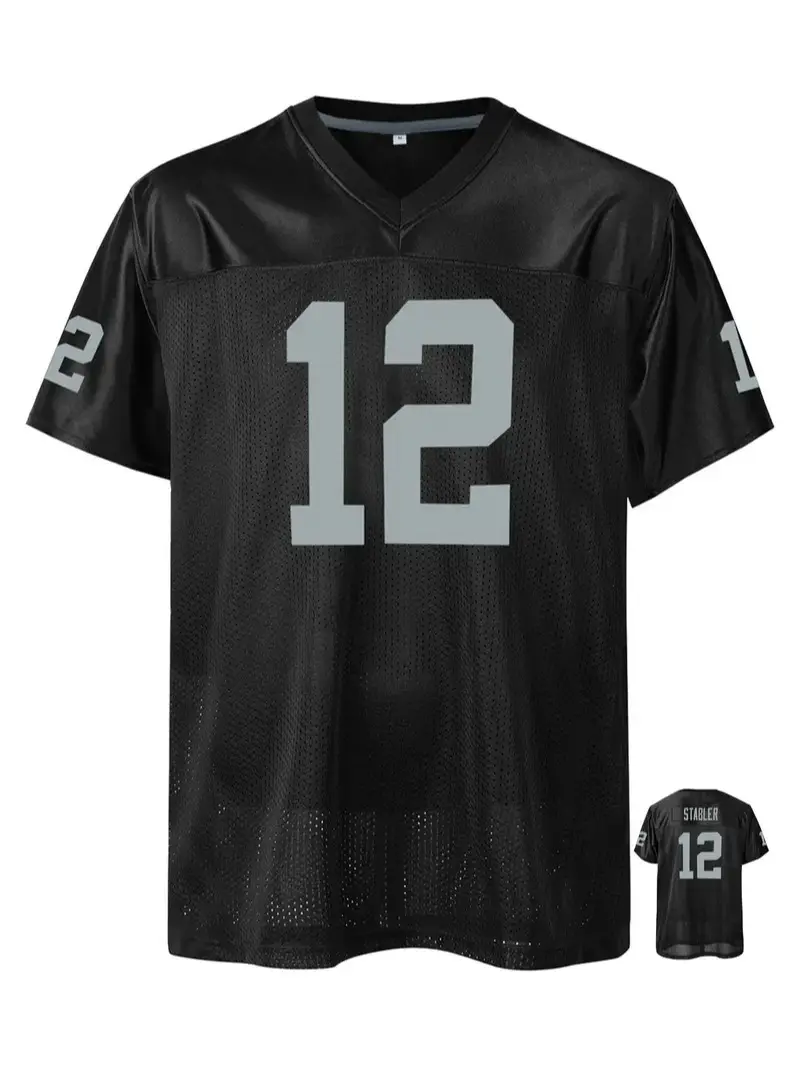🏈 Men's #12 Black Embroidered American Football Jersey