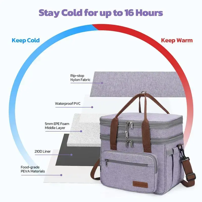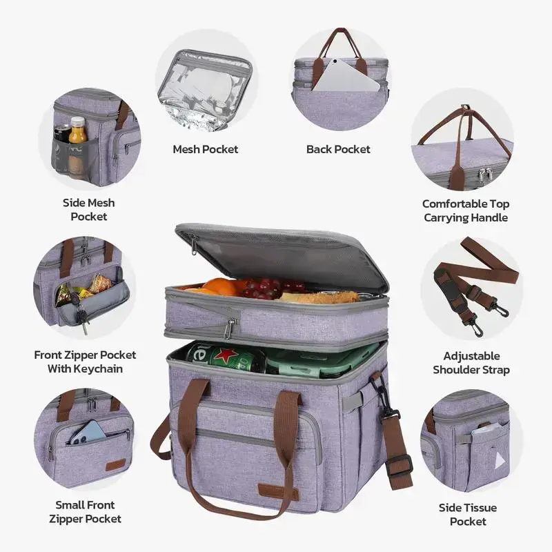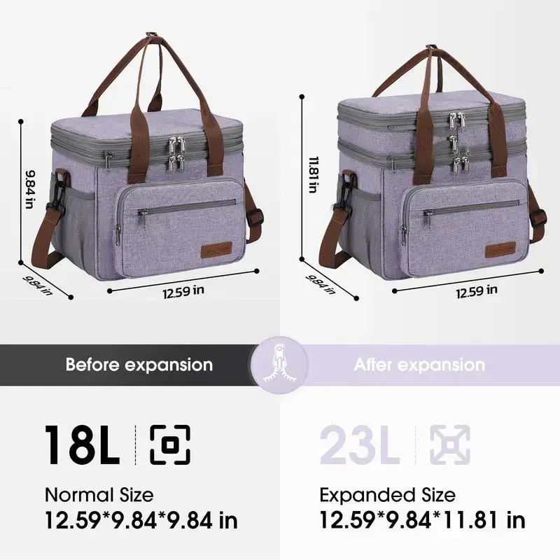 Maelstrom Lunch Bag Women,23L Insulated Lunch Box For Men Women,Expandable Double Deck Lunch Cooler Bag,Lightweight Leakproof Lunch Tote Bag With Side Tissue Pocket,Purple(gift)